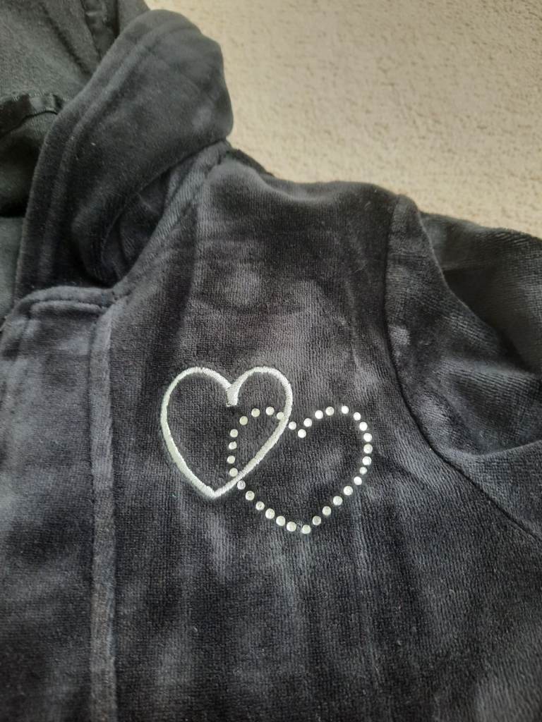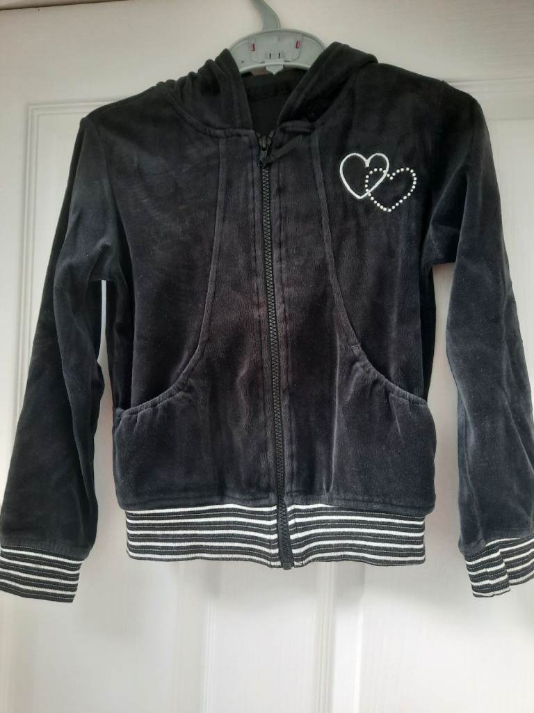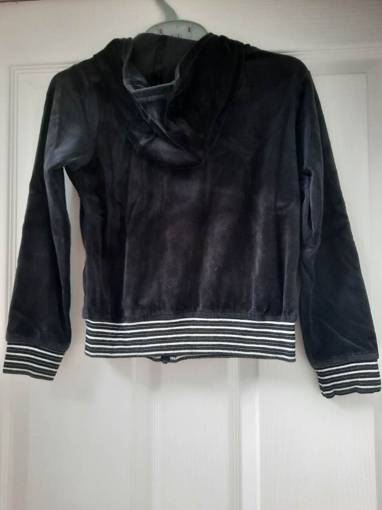 Black velour hoodie. Front zip and pockets. Age 8-9. Matalan