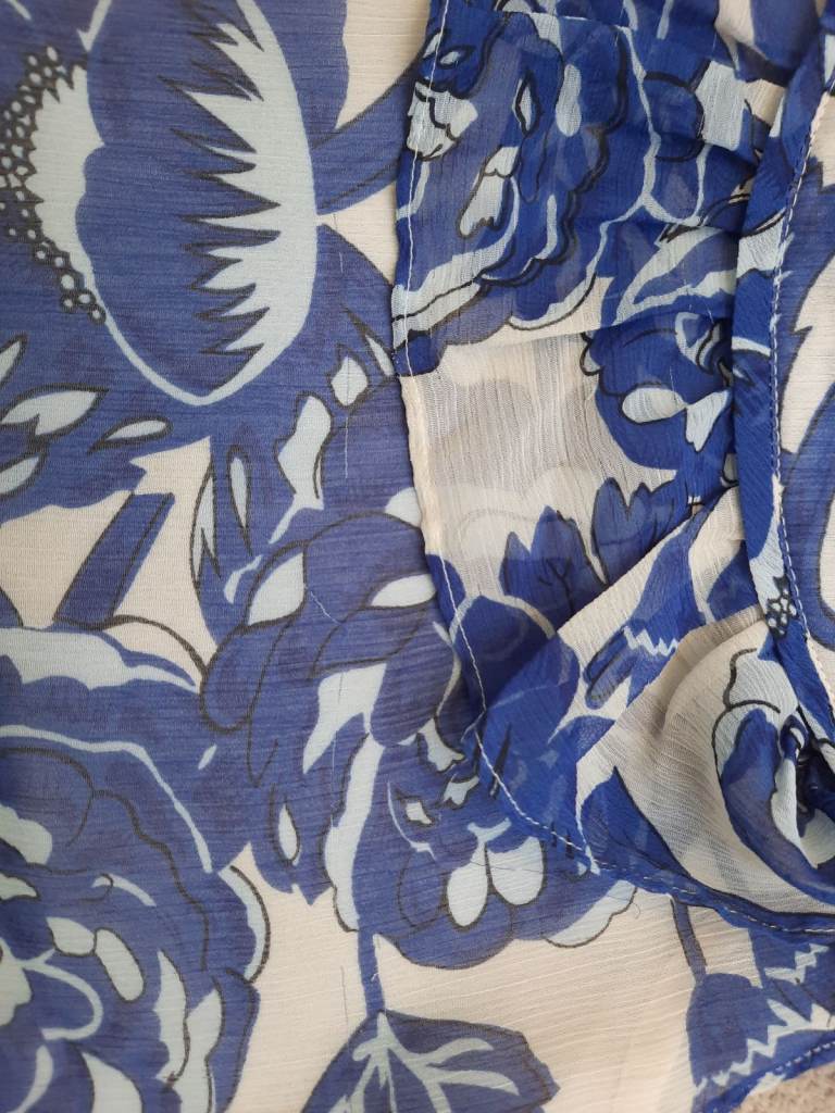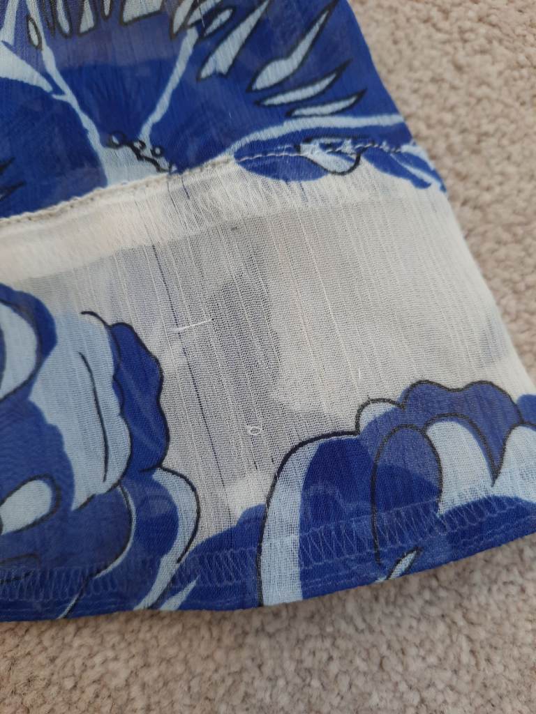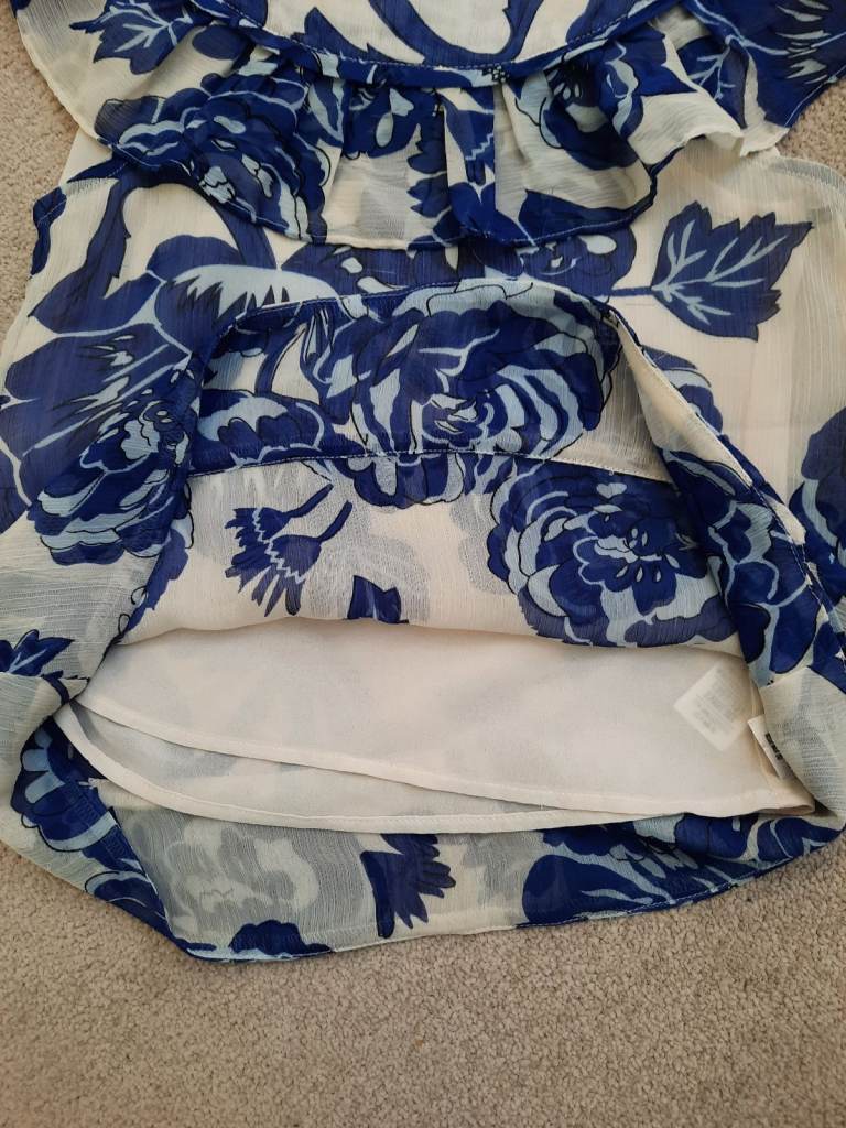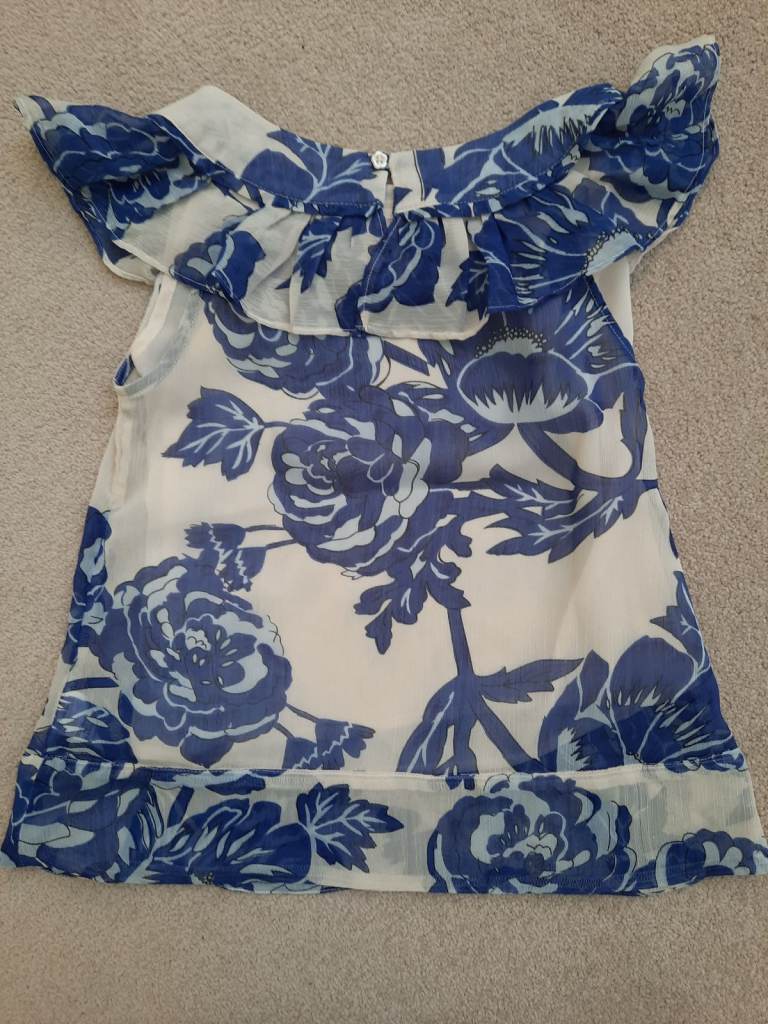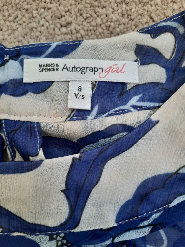 Flowery top - age 8 years. Flower design top with removable vest top underneath. There are a few runs in the material - I've tried to show in photo. You have to be up close to see them. M&S Autograph.