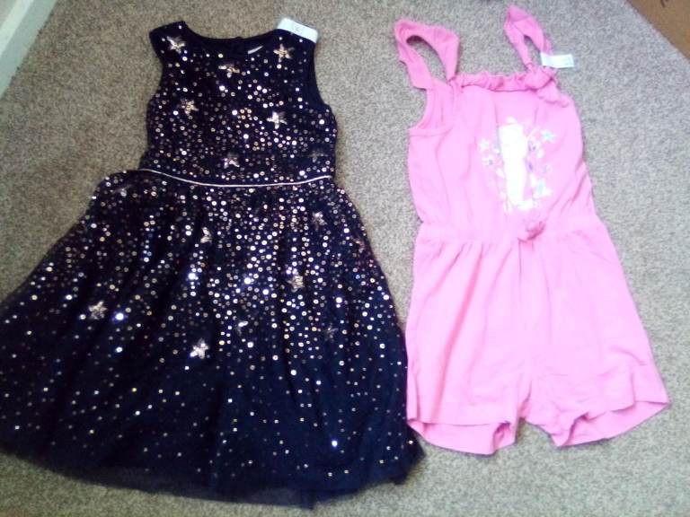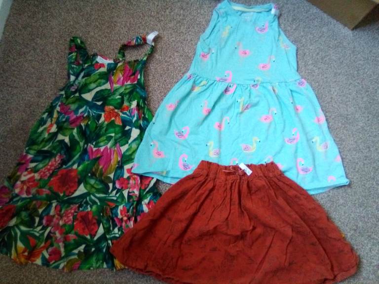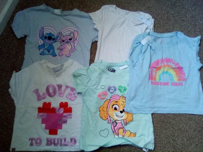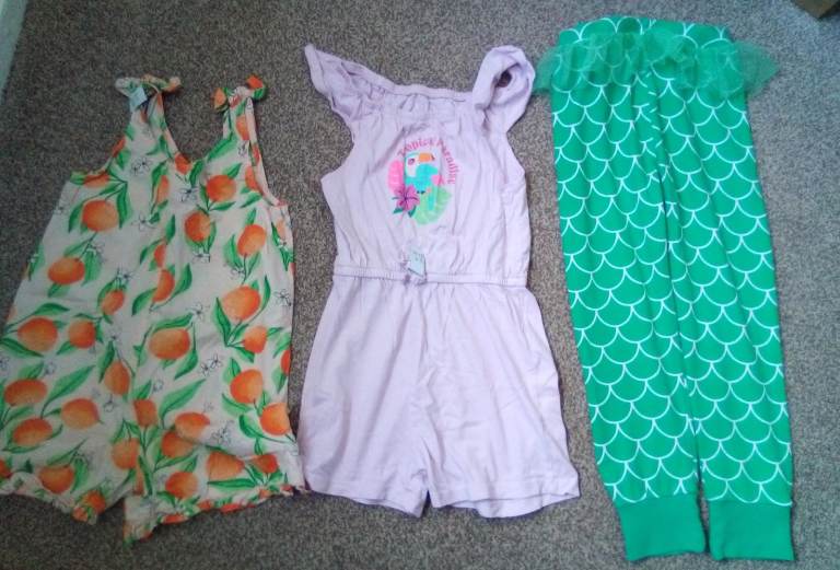 Mermaid top £1,, Wish Top £1,, Unicorn All In one £2.50,, Black Dress £3,, Pink Mermaid All in one £1.50,, 2x Shorts £1.50,, Stitch Set £1.50,, Encanto Bottoms £2,, Freckles and Daisies Dress £3,, Flower Dress £1.50,, M&S Flamingo Dress £2.50,, Russet Skirt £1,, Clementine Outfit £1.50,, Pink Outfit £1.50,, Green Leggings £1,, White T-shirt 50p,, Stitch T-shirt 50p,, Sunshine vibe T-shirt 50p,, Paw Patrol T-shirt 50p,, LOVE T-shirt £1,, 2x Vests £1,, OR ALL FOR £15.. no offers. COLLECT FROM BLAENAVON. If still listed then YES they are still for sale. DUE TO SO MANY TIME WASTERS ASKING THAT AND THEN NOT REPLYING I WILL NOT ANSWER JUST THAT QUESTION ANYMORE/ other ages listed/to be listed and will also be getting around to Boys Clothes over the next few days.