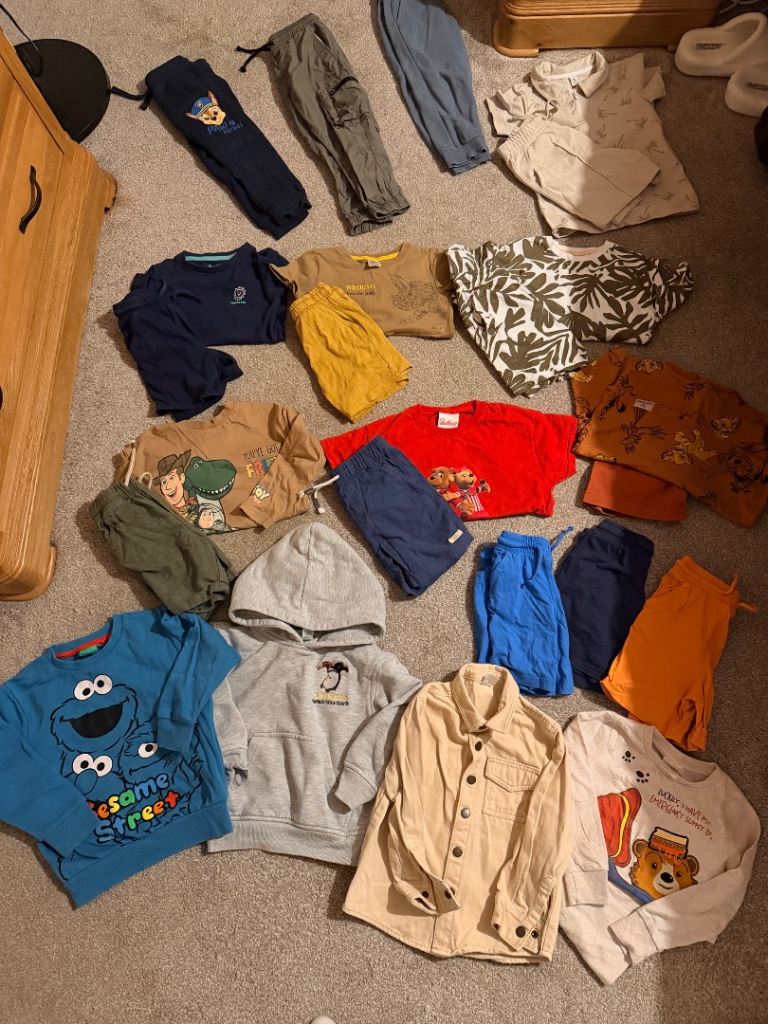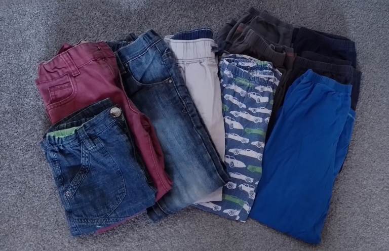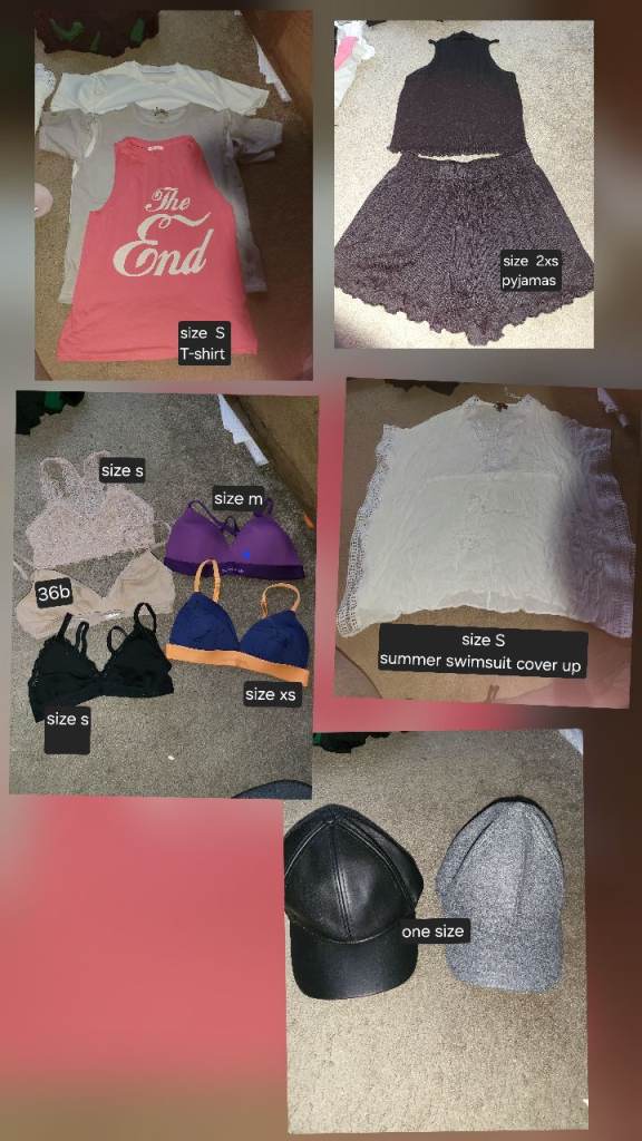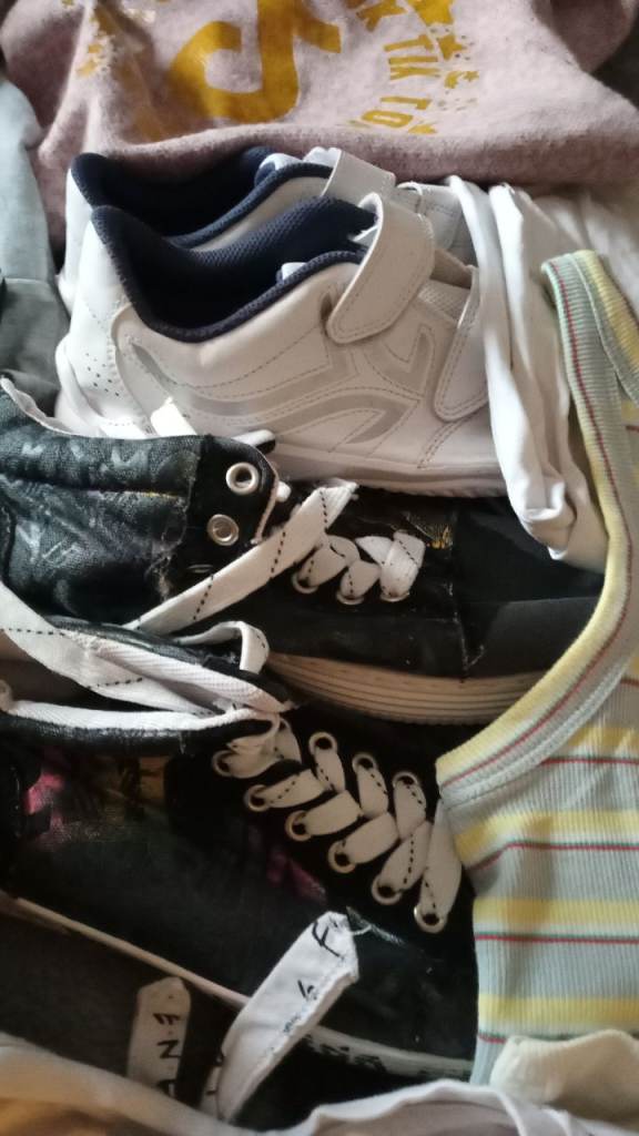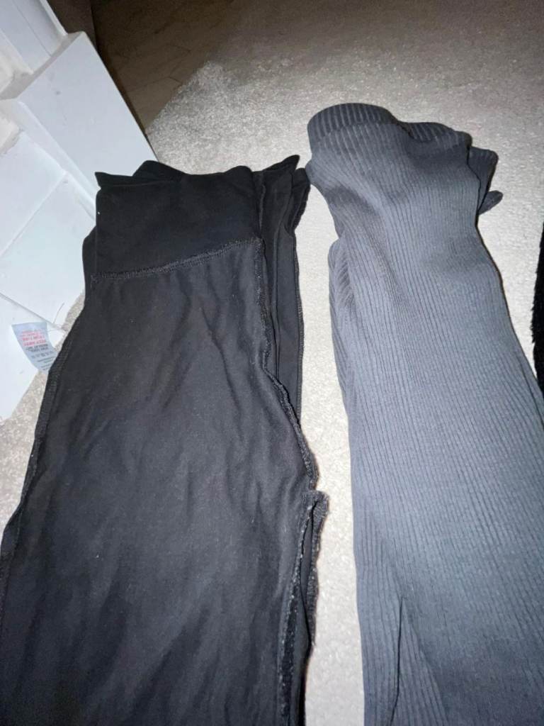6 pairs on leggings/bottoms. The 3 black pairs together top right and last photo are £1 each or all 3 for £2 ( i pair of wide legged joggers and 2 pairs of fluffy leggings) the grey leggings and flairs to the left are £3 each or £5 for both and lastly the brown nike leggings that have been woren once are £8