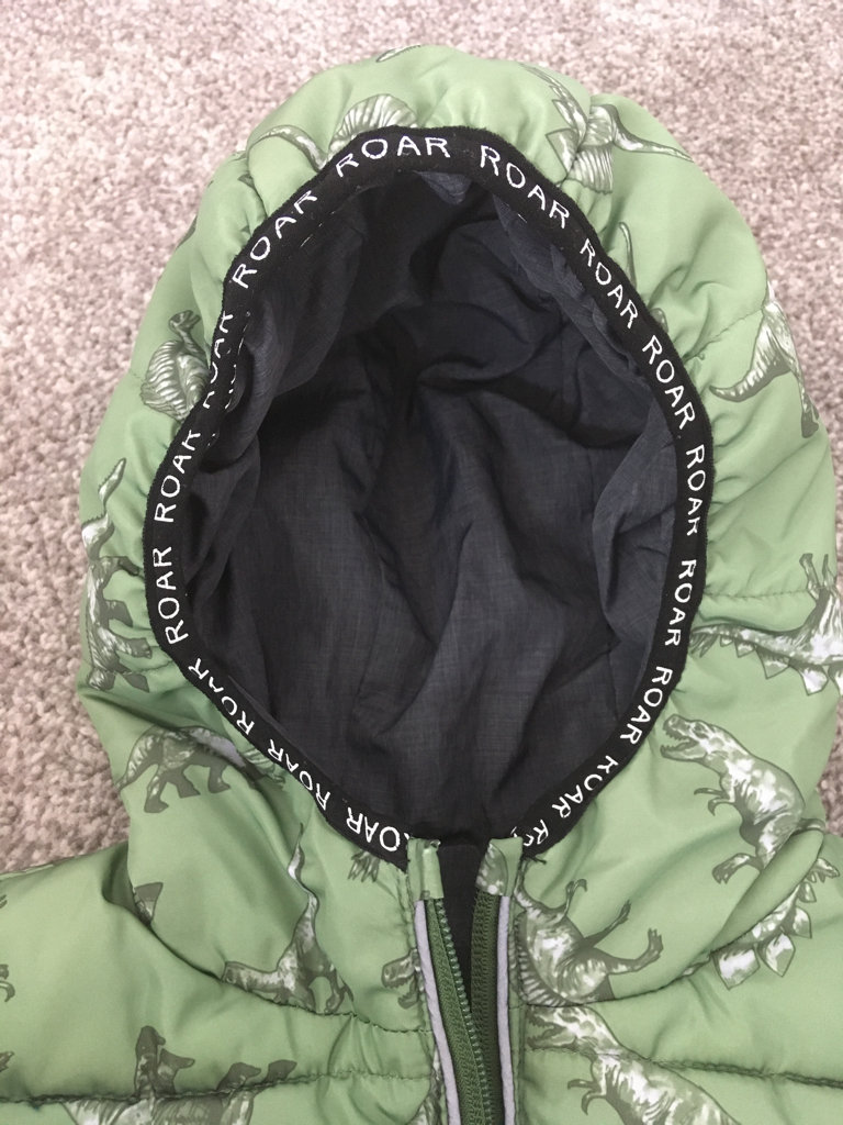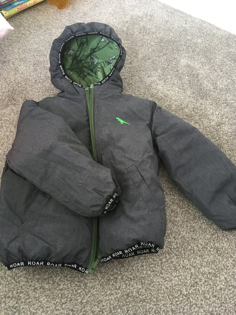 Boys reversible jacket plain grey and green dinosaurs age 3 to 4 excellent condition