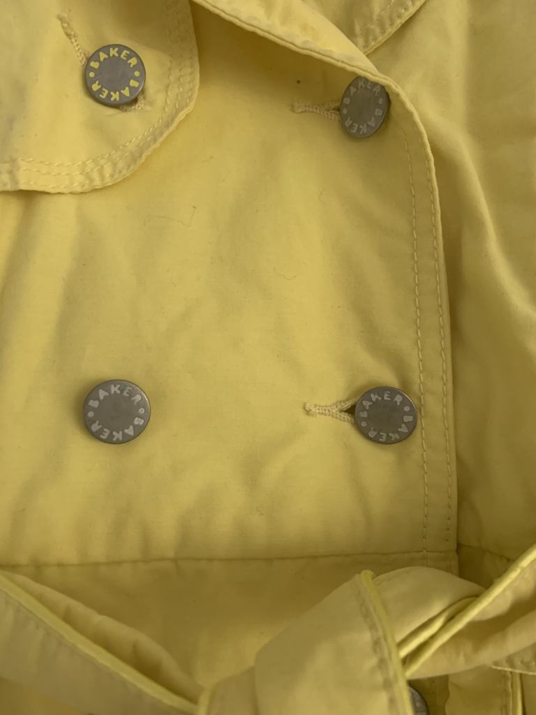 Ideal for the coming Spring, buttons emossed with 'Baker' and embroidered on the coats belt.