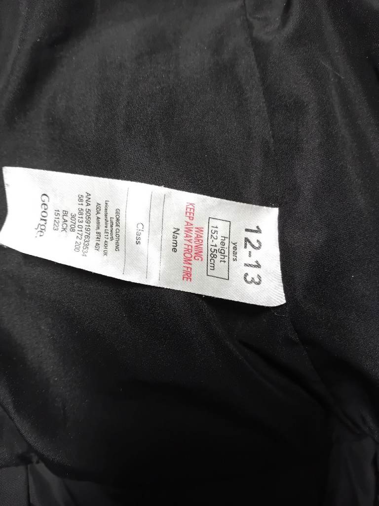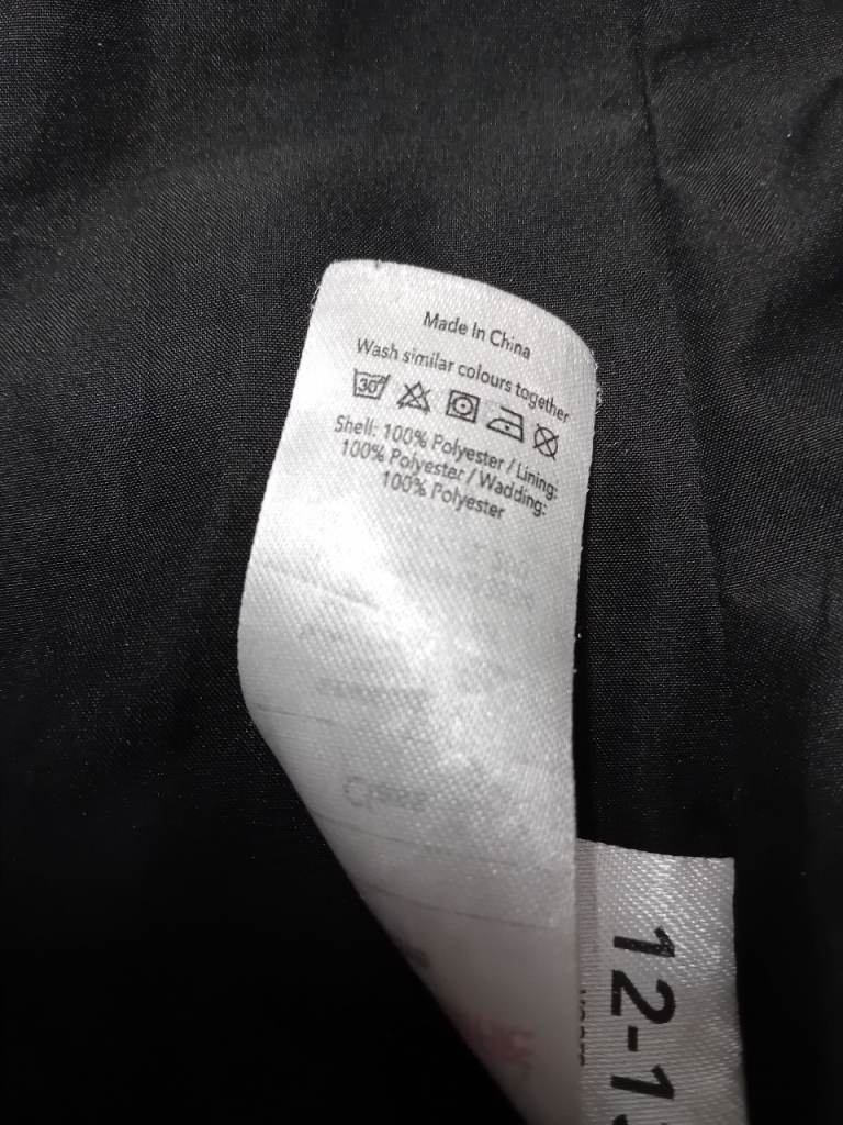 Black padded coat agex12/13 years