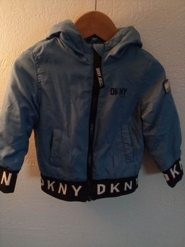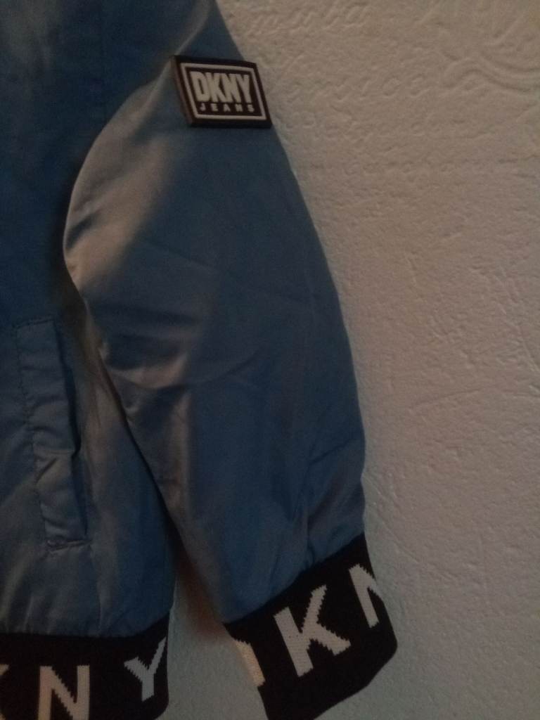 Boys DKNY jacket, very nice jacket that's got a cotton/fleece lining , zip up front, no tears or holes , the only thing wrong is one of the letters on front is missing part of it , it's just a small part of the K hardly noticeable.... Very small letters, got a full track suit DKNY too in burgundy to go with jacket if your interested?? It's on my profile.. . Comes from no smoking or pets house . Cost me £45 were in bilborough NG8 thanks for looking