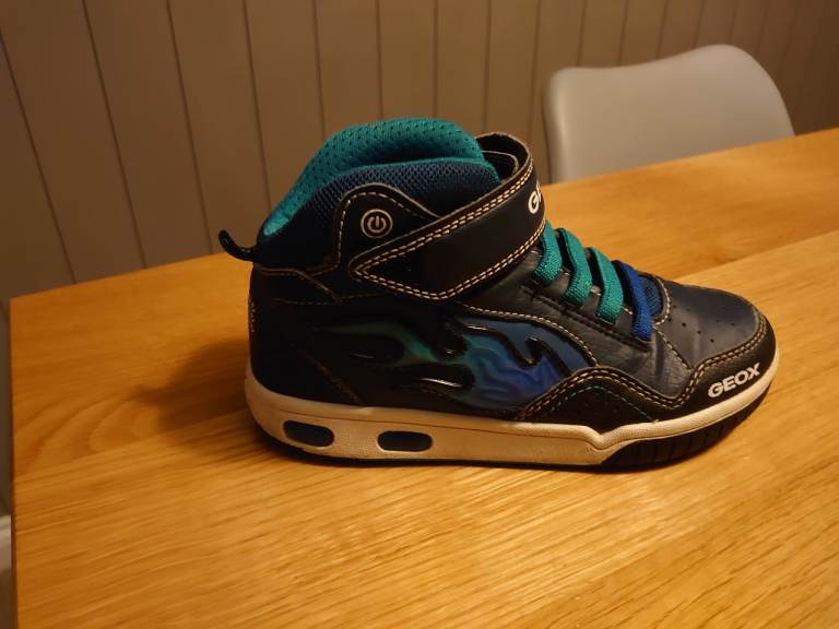 Boy's size 13 Geox mid-tops in great condition. These trainer's come with built led lights in the heel and sides. From a smoke and pet free home.