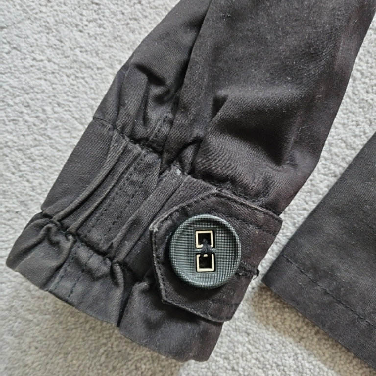 Button detail on long sleeves and on shoulders
