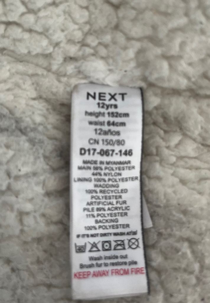 NEXT Girls Puffer Coat, 11-12 Years, Good Condition