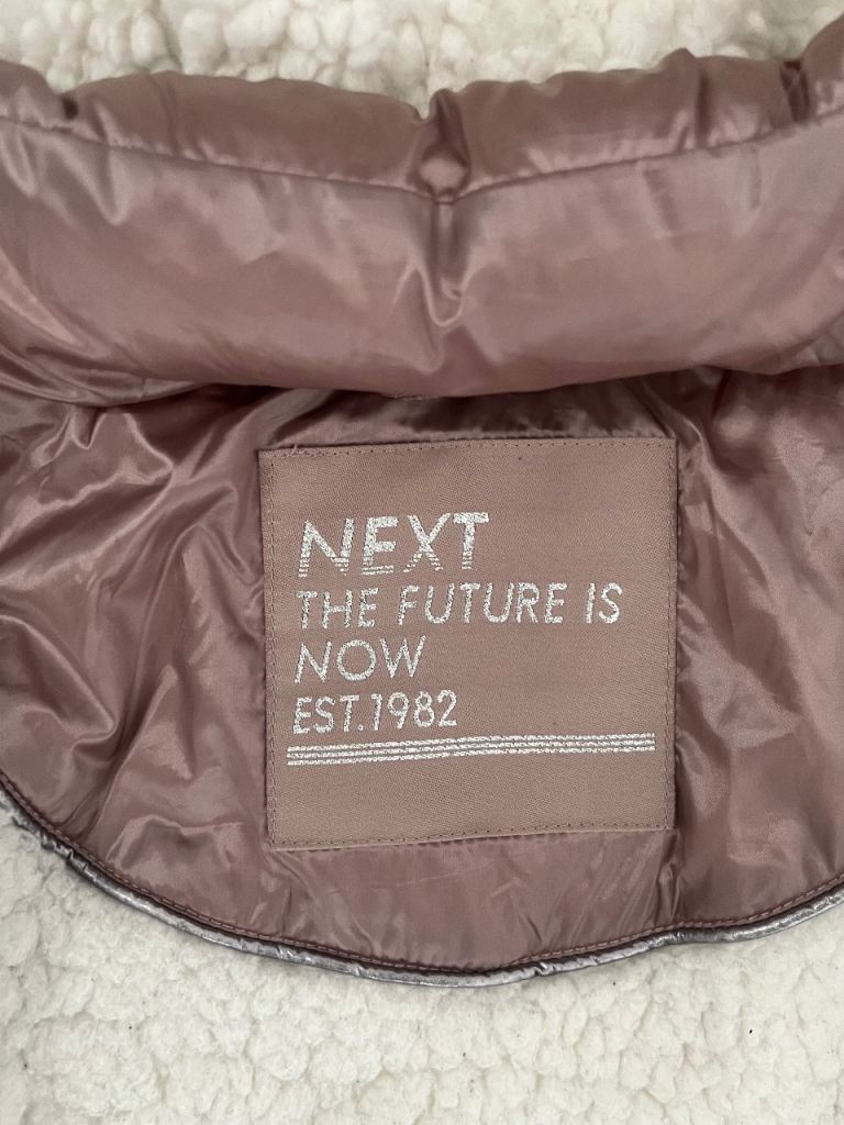 Lovely NEXT girls coat, size 11-12 years (height 152cm). It's a pinkish/mauve puffer style with a cosy faux fur-lined hood and a fleece-like lining inside. It's in good, clean condition.