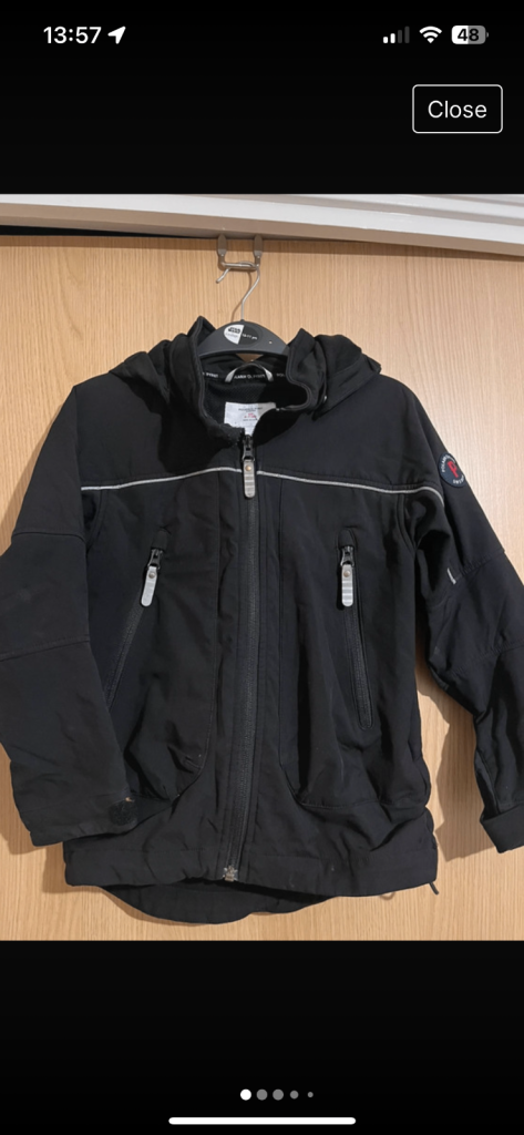 In good used condition. My son wore this but still has a lot of life left in it. Warm and durable. Fleece lined inside.