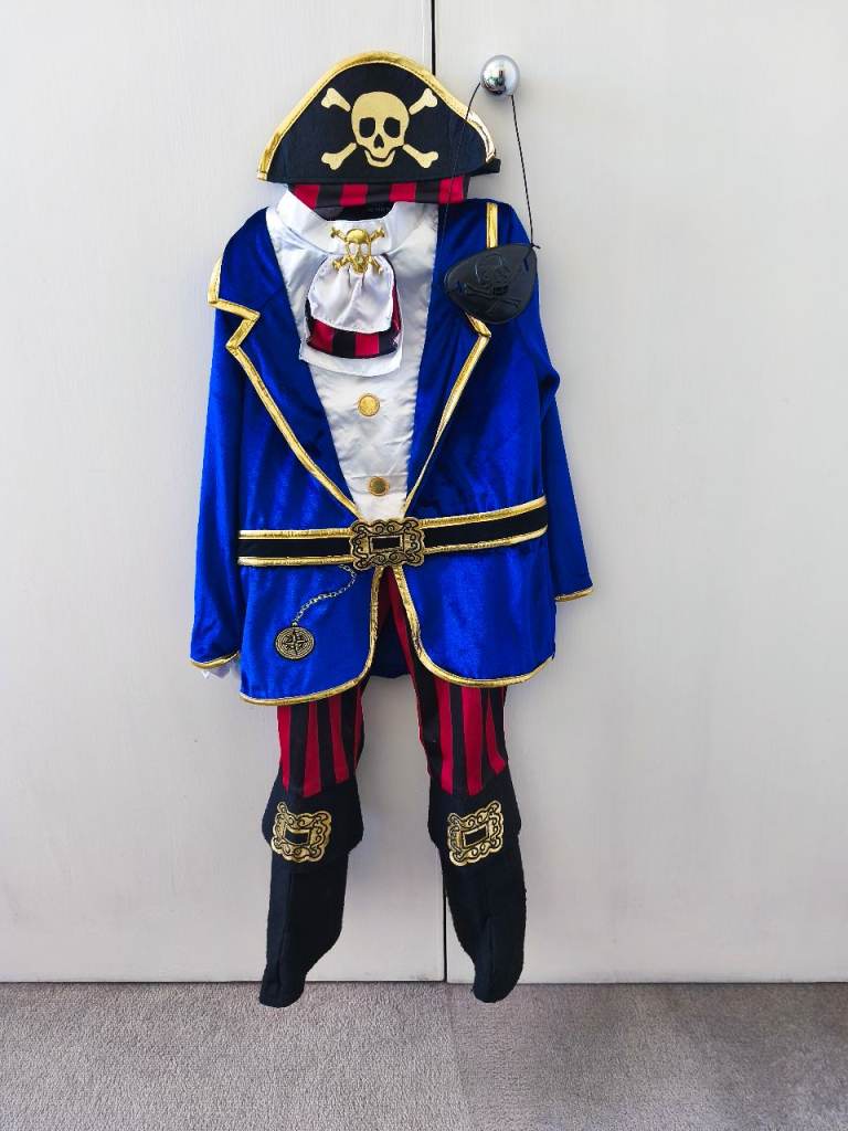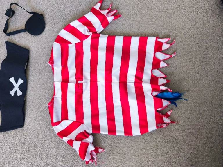 Pirate outfit for kids age 3-4. The t shirt has some imperfections (see pics 2-3). Hat and the eye patch are in very good condition. From pet and smoke free home. Collection from Wimbledon. Cash on collection.