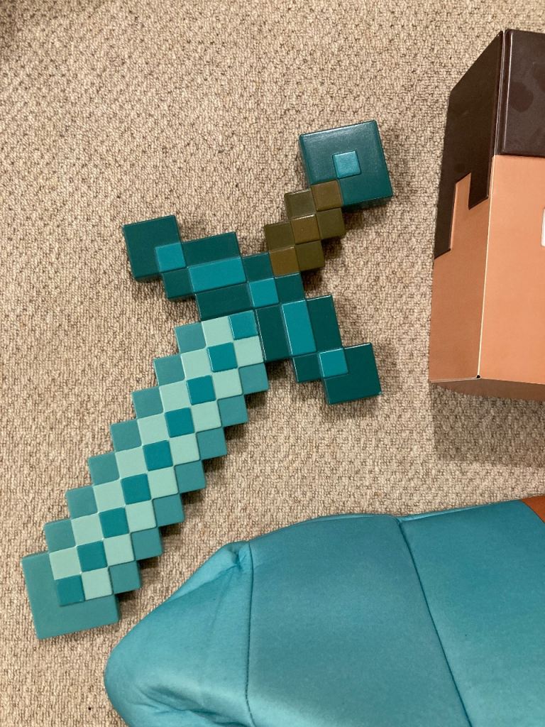 Posting for 9+ yearsMindcraft costume with mask and sword