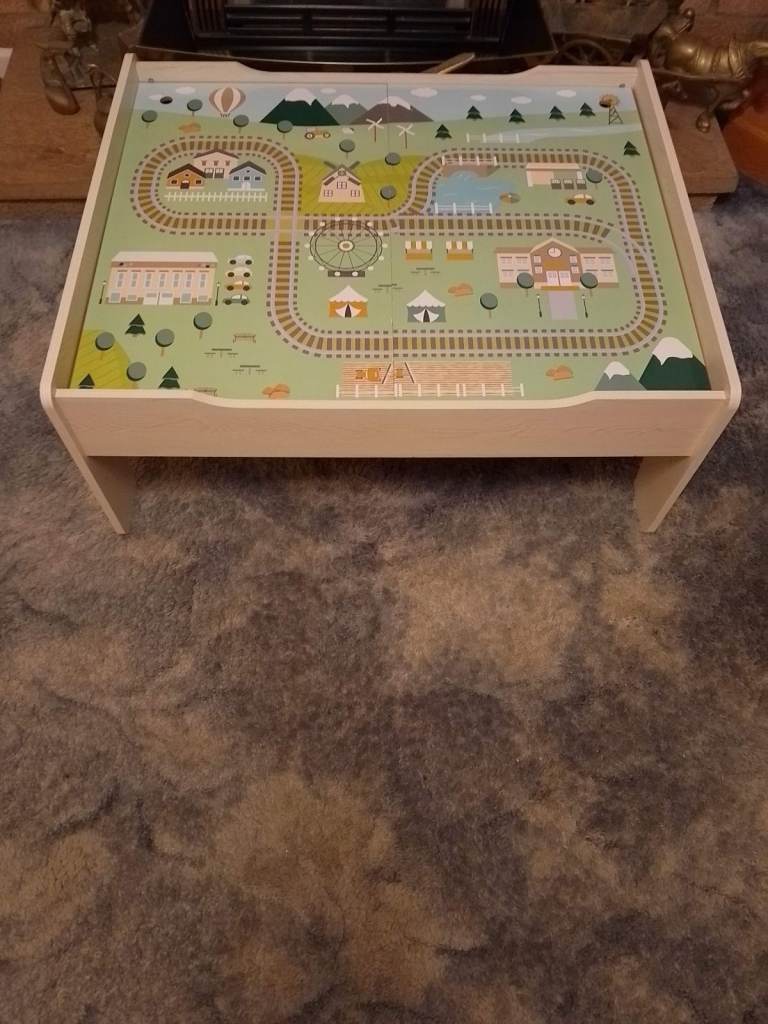 Child's Train Table / Road Table with A selection of Animals and people and Road signs.