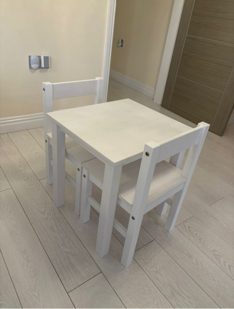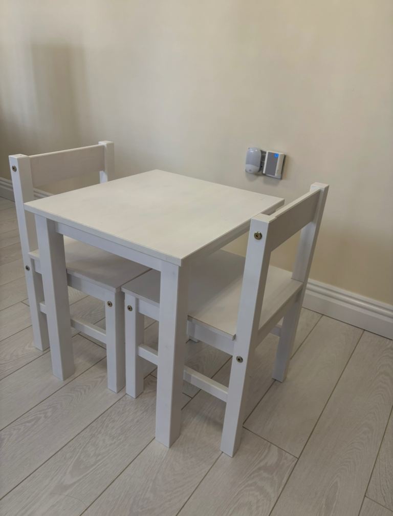 Posting for 12+ yearsLittle Helper white wooden table and chair set