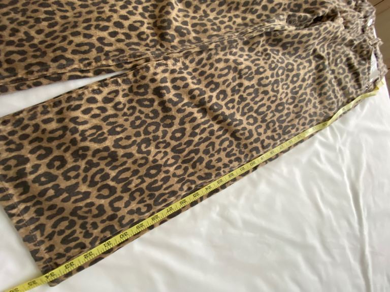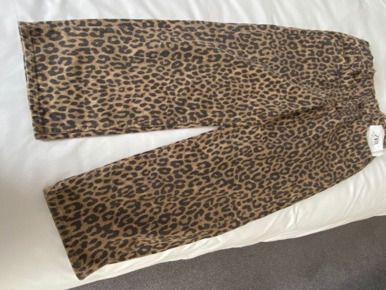 Girls age 11-12 leopard print jeans with stars on back pockets, new never worn. Outside leg length 34.5 inches 88cm