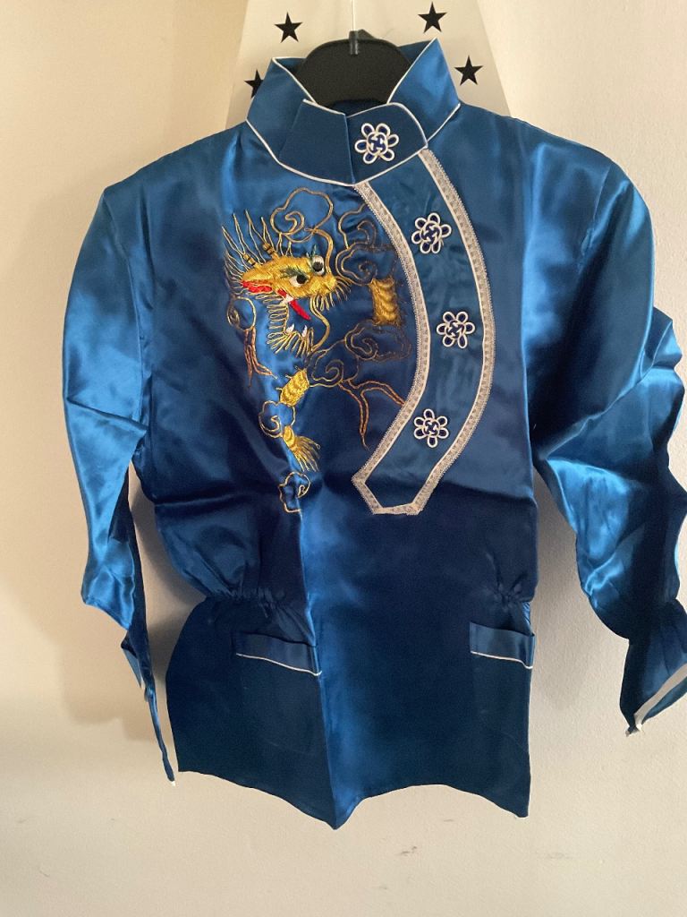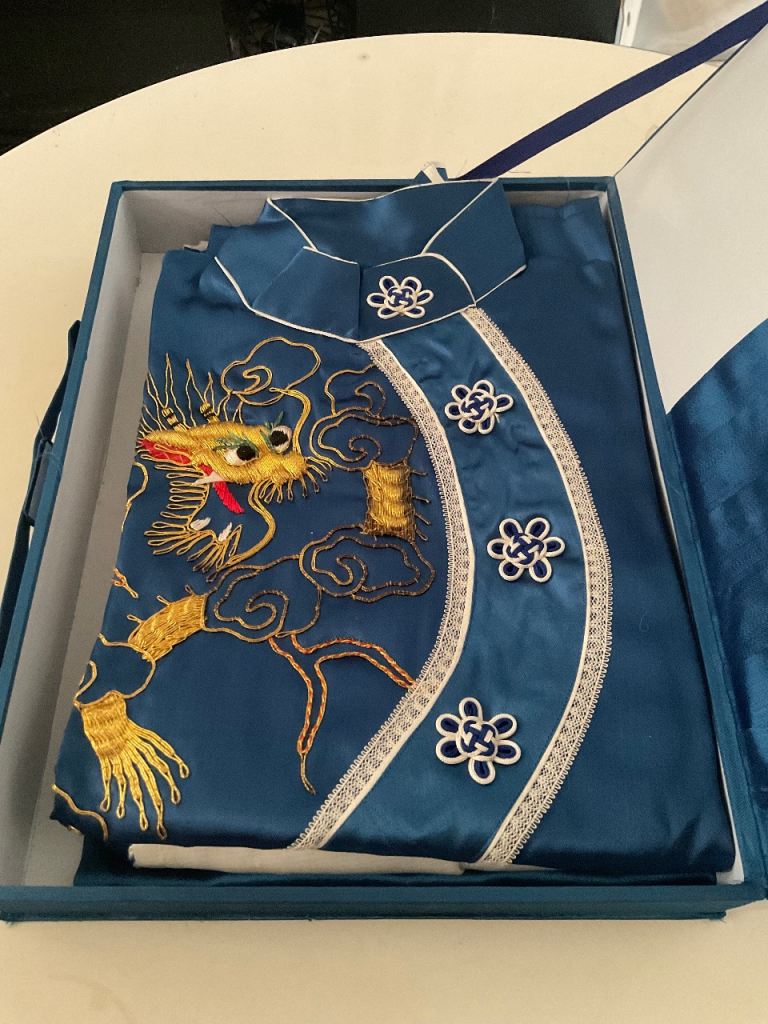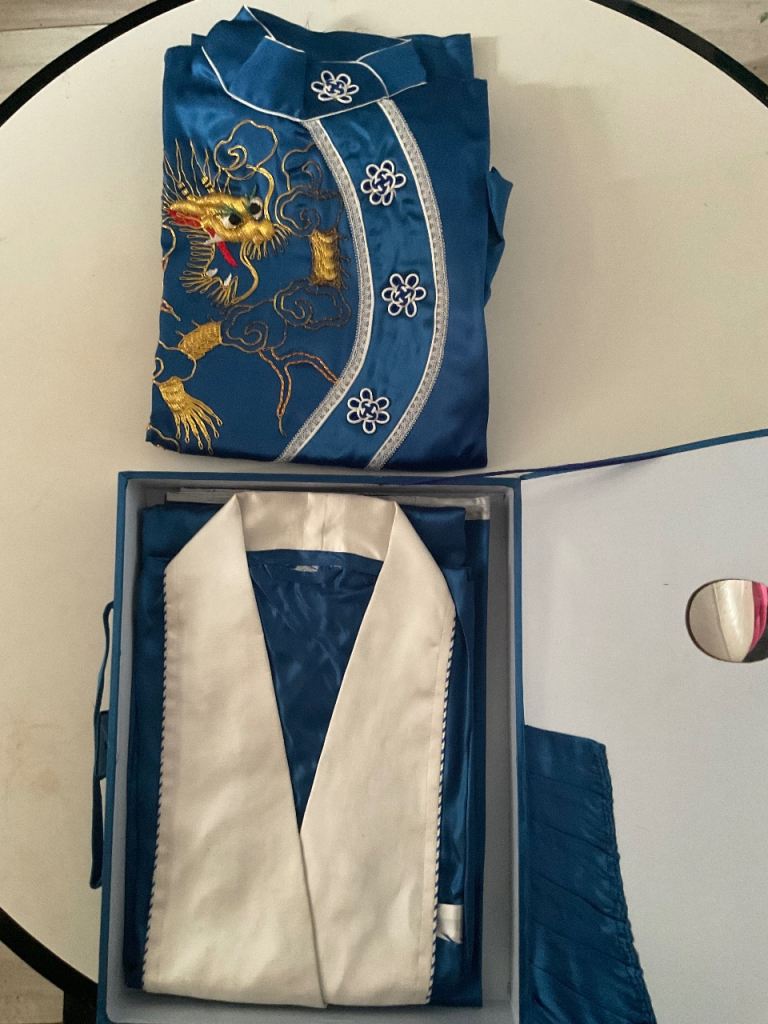 Kimono Chinese pyjamas & robe in blue statin In presentation-box, this is unworn