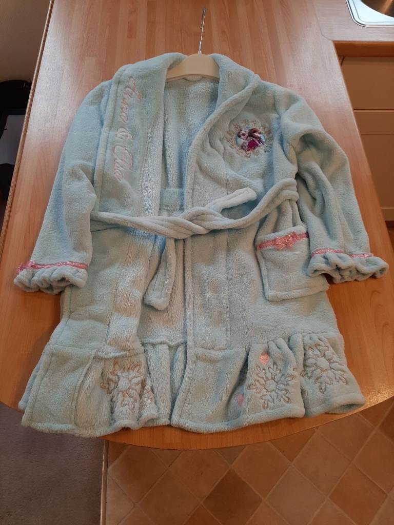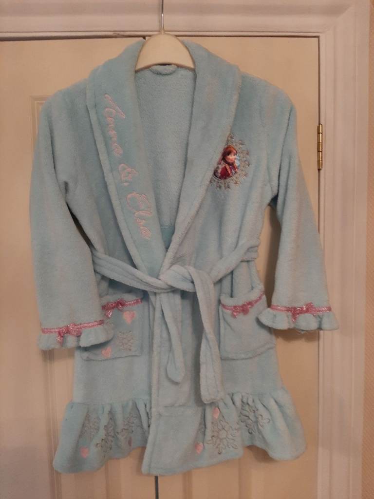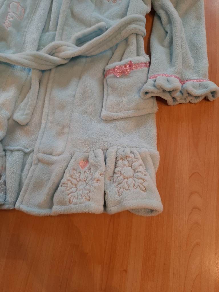 Disney Girls Frozen Princess Elsa & Anna Light Blue Dressing Gown 6-7 Years.
