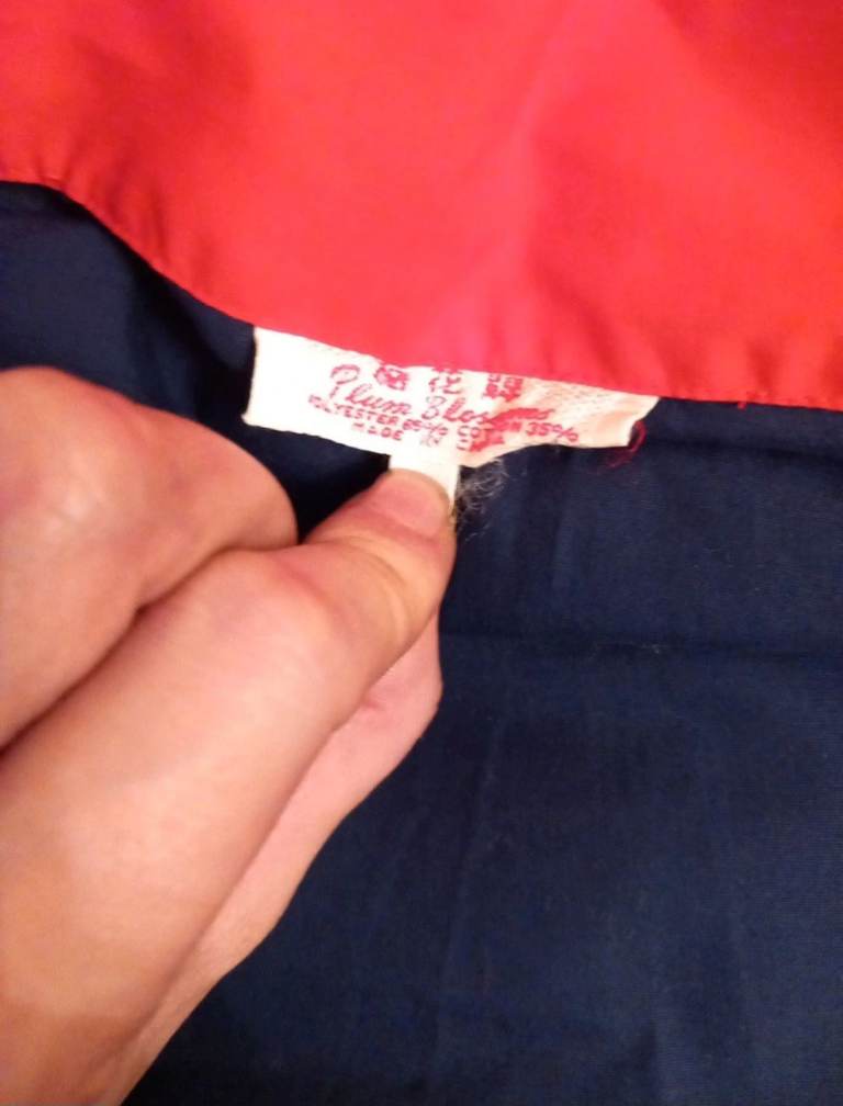 Rare vintage two-piece loungewear/pajama set from the brand "Plum Blossoms." Made in China, likely from the late 70s or 80s.