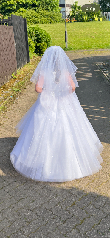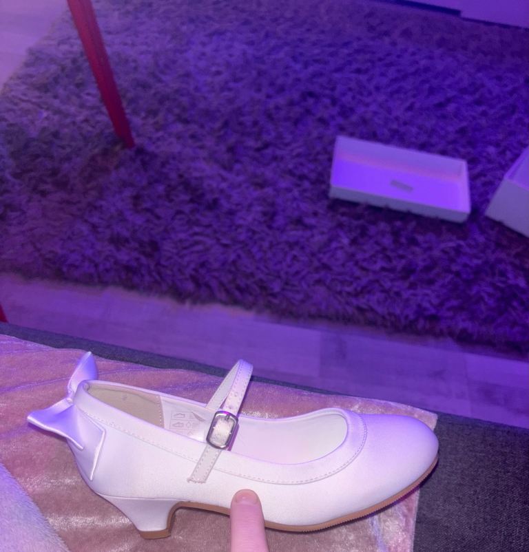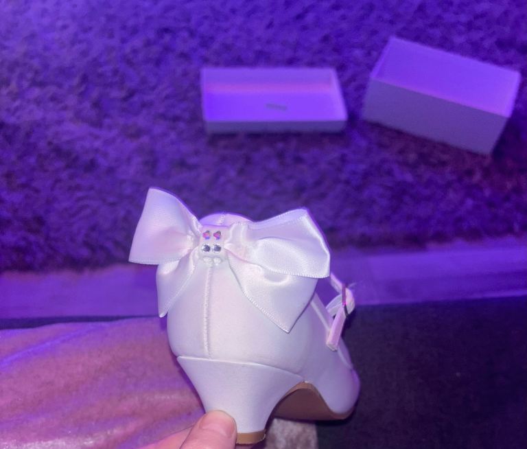 Communion dress from carriages and castles. Dress great condition . Absolutely beautiful comes with vail bag and tiara and underskirt. Also have shoes they are size 13 and have a small mark on back. Free to take