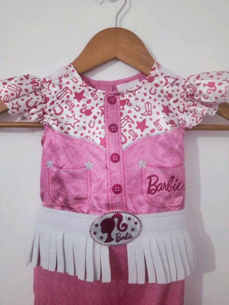 Matalan Barbie Cowgirl Costume Kids Pink Jumpsuit Fancy Dress