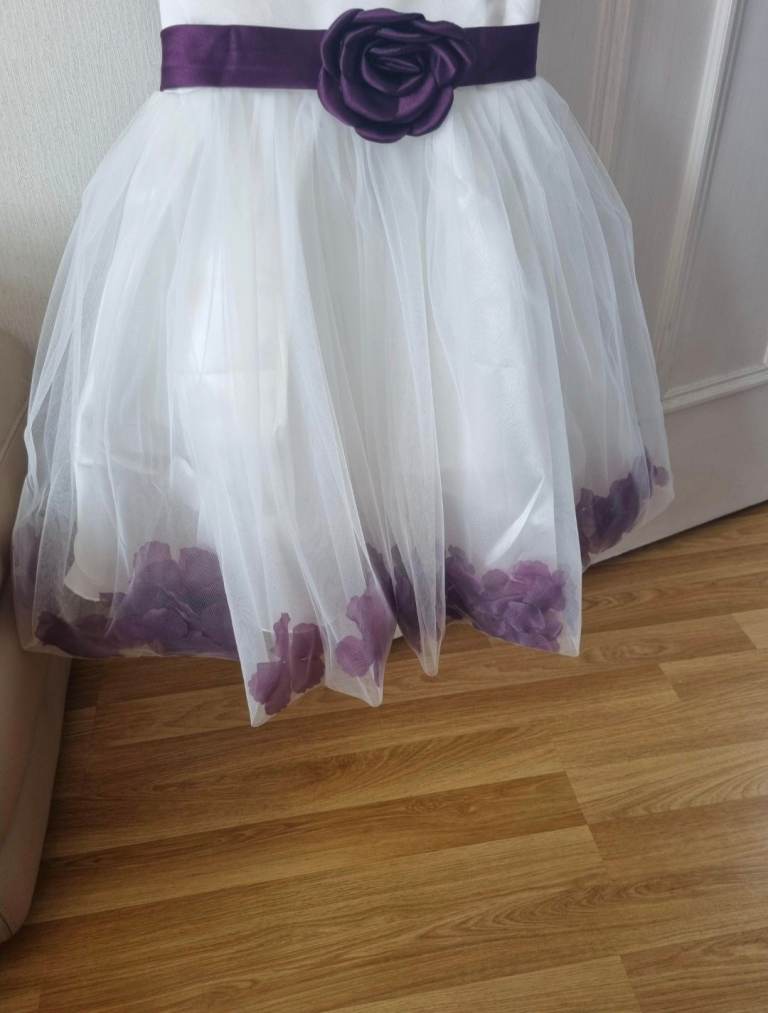 Girls size 8-9 years dress, never been used or worn in great condition. Perfect dress with a grape coloured sash with bow at the back and grape flower petals in the skirt. Also have a size 4-5 years! Buyer collects cash on collection £10