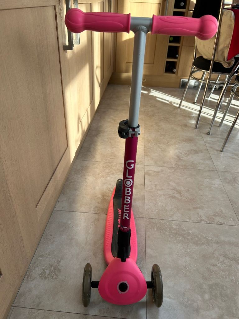 Globber foldable 3 wheel pink scooter with light up LED wheels