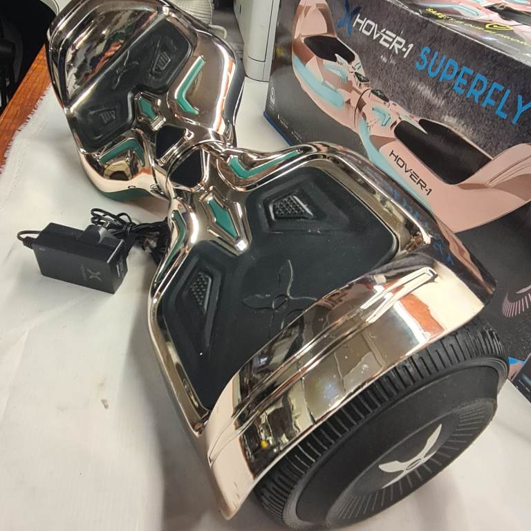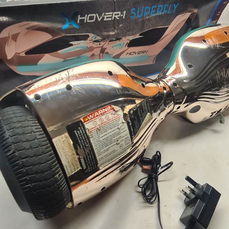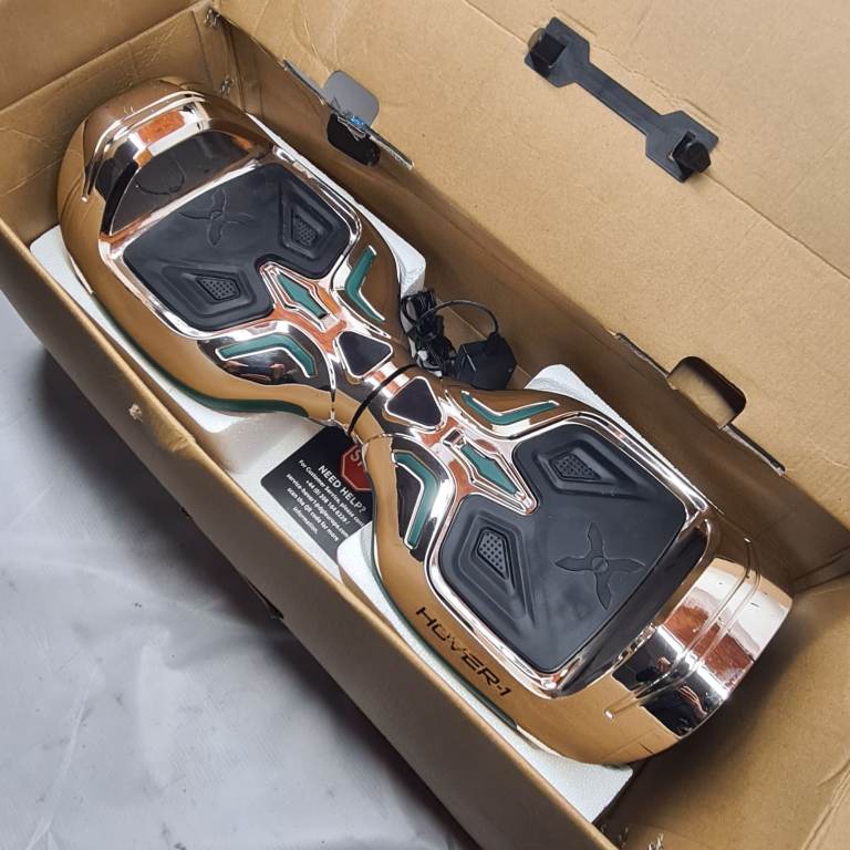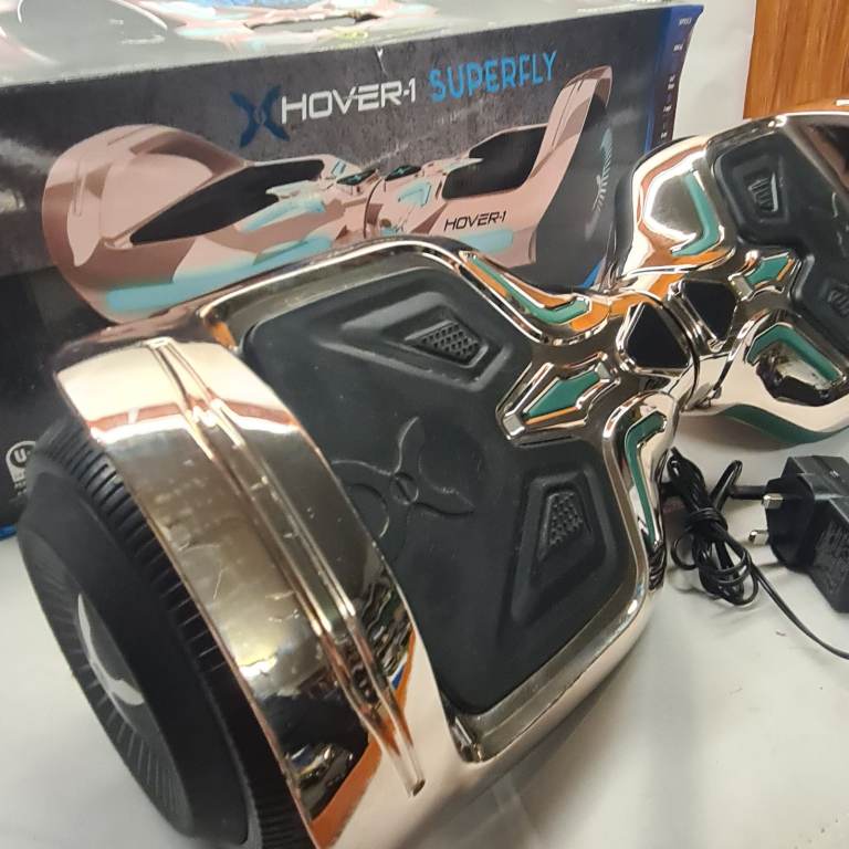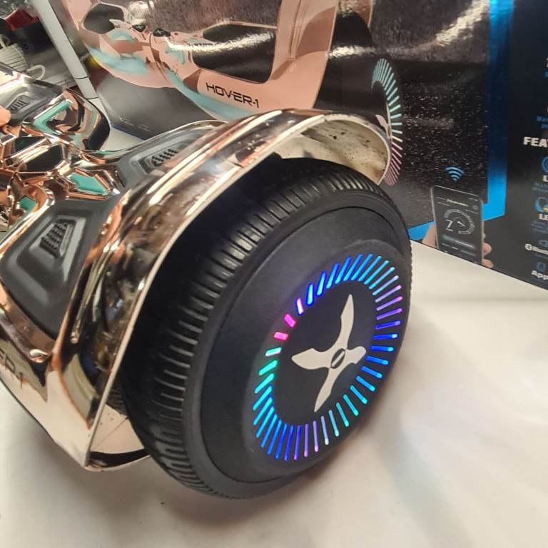 The Hover-1 Superfly Hoverboard in a striking Rose Gold finish complete with a built-in Bluetooth speaker to play in tandem with the customisable LED lights and multi-coloured LED wheel lights. The Mobile App compatible will allow you to toggle your difficulty, check your speed and customise your LED headlights. For added safey, there is IPX4 Water Resistance and UL Certification to the hoverboard and the charger. A rechargeable Lithium-ion battery means you can go to a distance of 6 miles at 7mph and has 6.5 inch wheels for a comfortable ride.