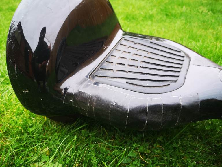 The scooter’s outer shell has minor cosmetic wear: there are scratches and tears on the plastic casing. Which do not affect the scooter’s performance, safety, or usability in any way.