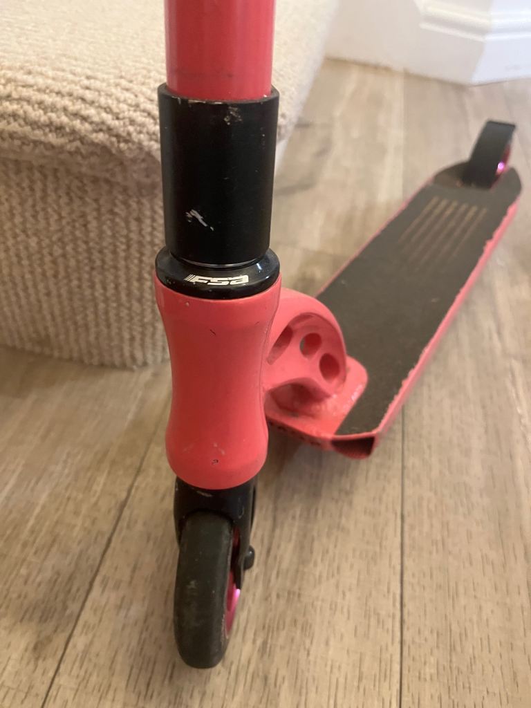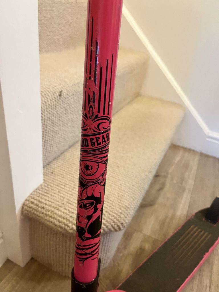 Smooth ride, 32 inches tall and handle bars are 18 inches wide. Used but still in great working condition. For ages 8 years plus