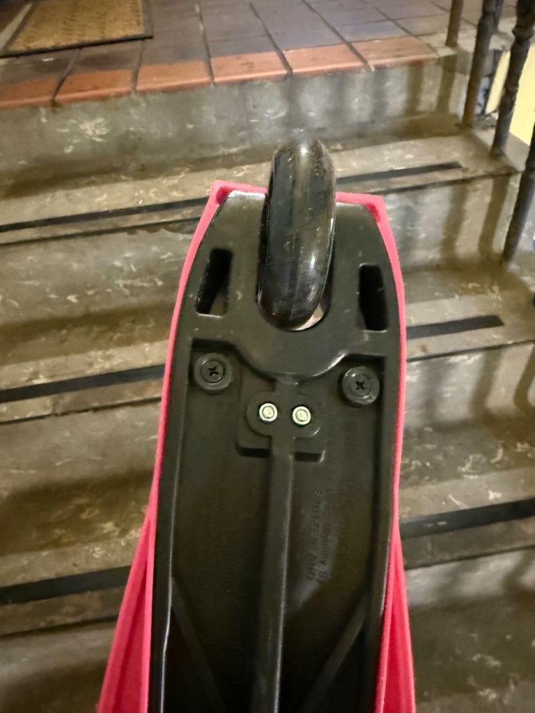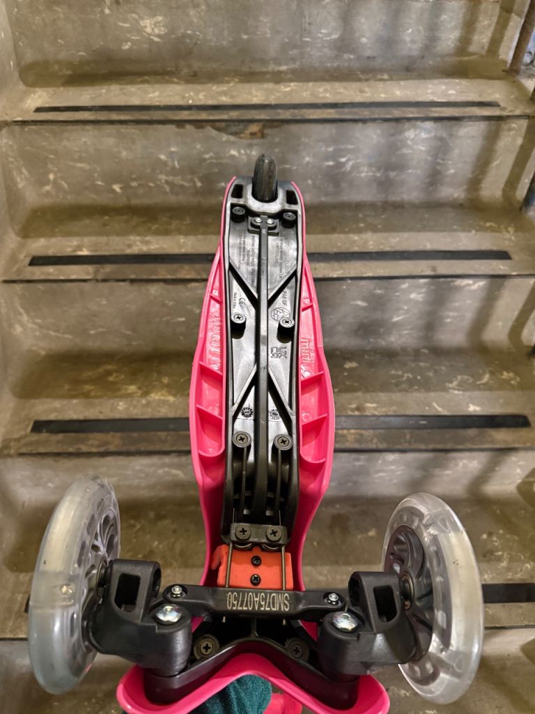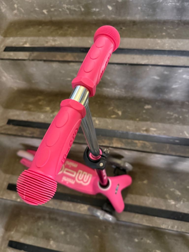 She loved it’s pink colour and it is really robust and safe for a toddler. But it was far too small for my 4 years old baby because she also likes riding big scooters.