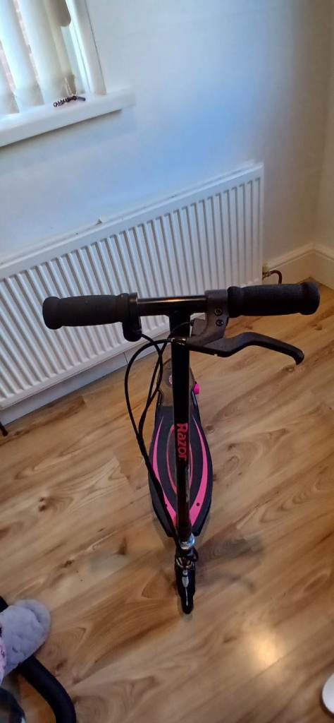 Used Razor electric scooter for age 8+, black and pink, max speed 10mph, comes with charger.