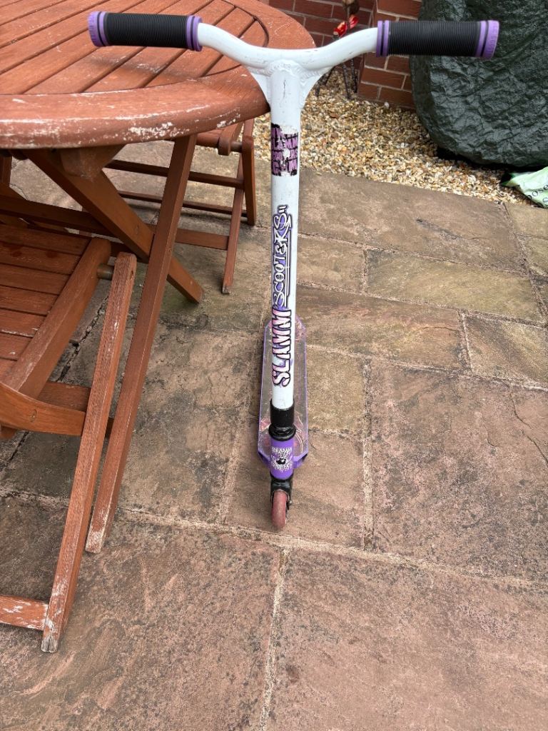 Slam scooter, purple and white. Used but plenty of life left in it. From smoke-free, pet-free home. Buyer collects