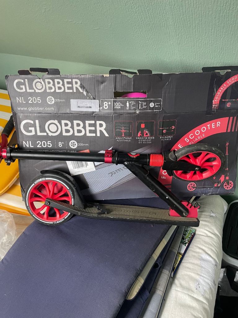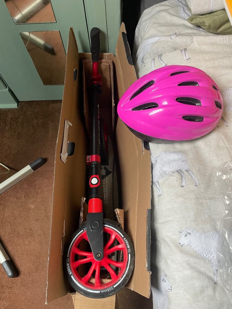 Childrens scooters these are globbers scooters made to last they fold down when not in use to store only used a few times bought for £84.99 each iam selling them for £30 each one and you can choose a free safety helmet worth £20 each these are great fun for 5years up to adult I still have the original boxes if wanted