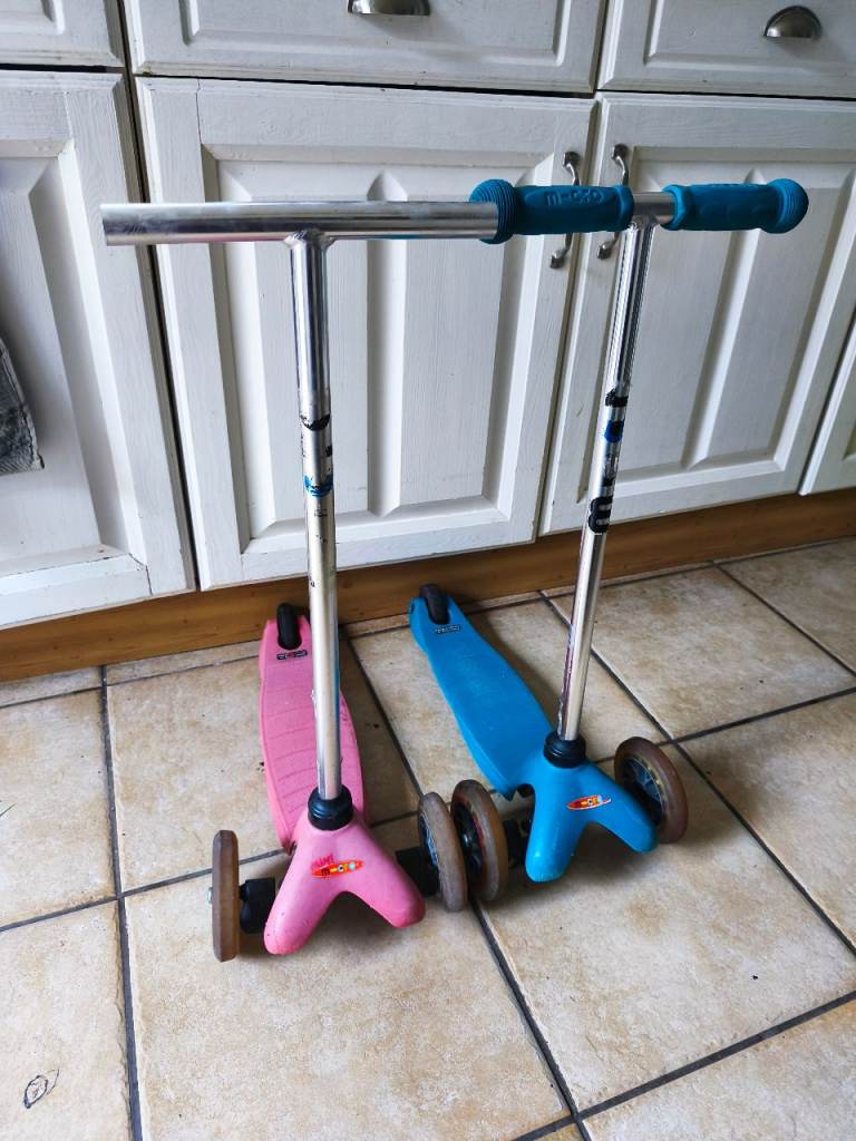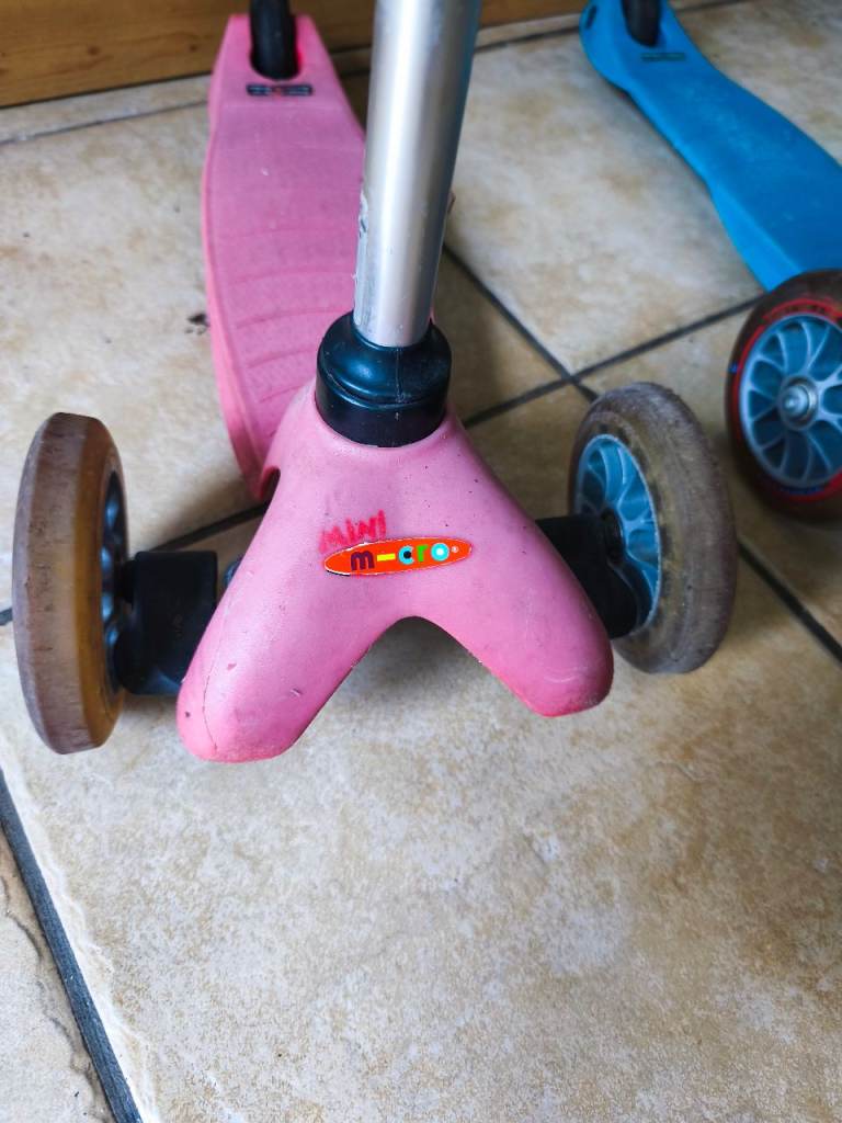 Two Mini Micro scooters in fair condition, with plenty of life left. From pet and smoke free home. Collection from Wimbledon.