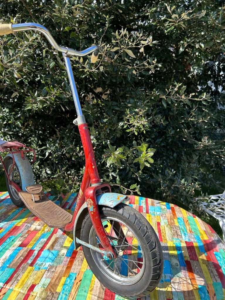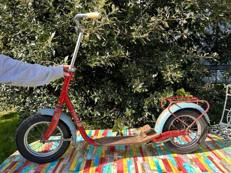 Original 70’s scooter with a large foot plate, thick tyres and a rear foot break.
