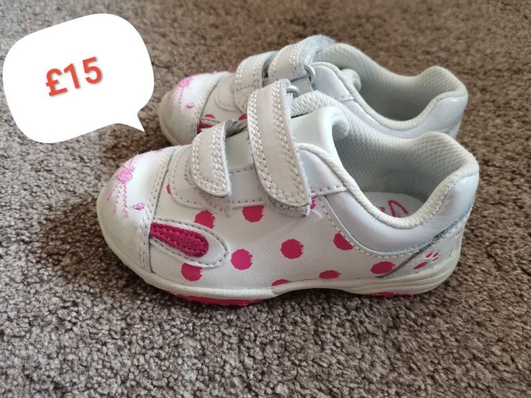 ⏺️Toddler girl trainer with bunny features on from clarks size 5G. Only been worn for a few times and is in excellent condition. (Rrp £28) will sell for £15 ovno.