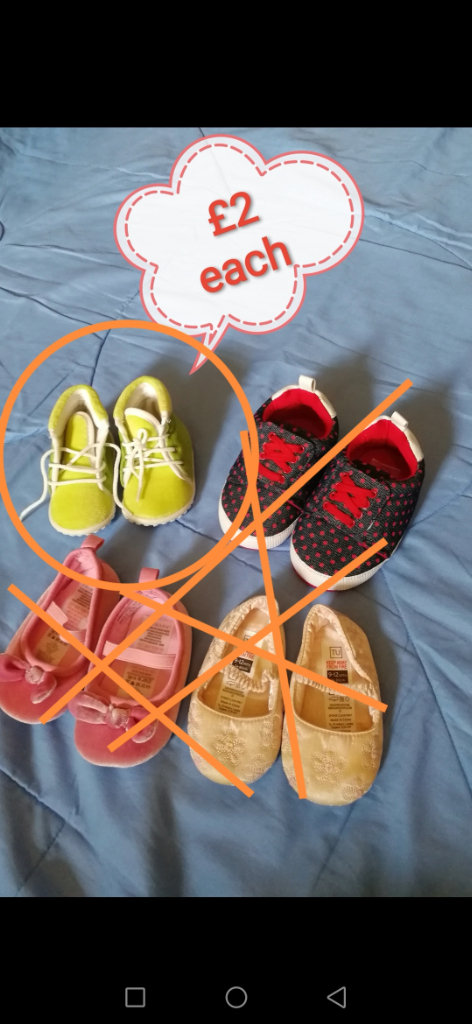 ✴️ Baby shoes (image 7) the green one only left for age 3 months . In very good condition as new. Selling for £2.