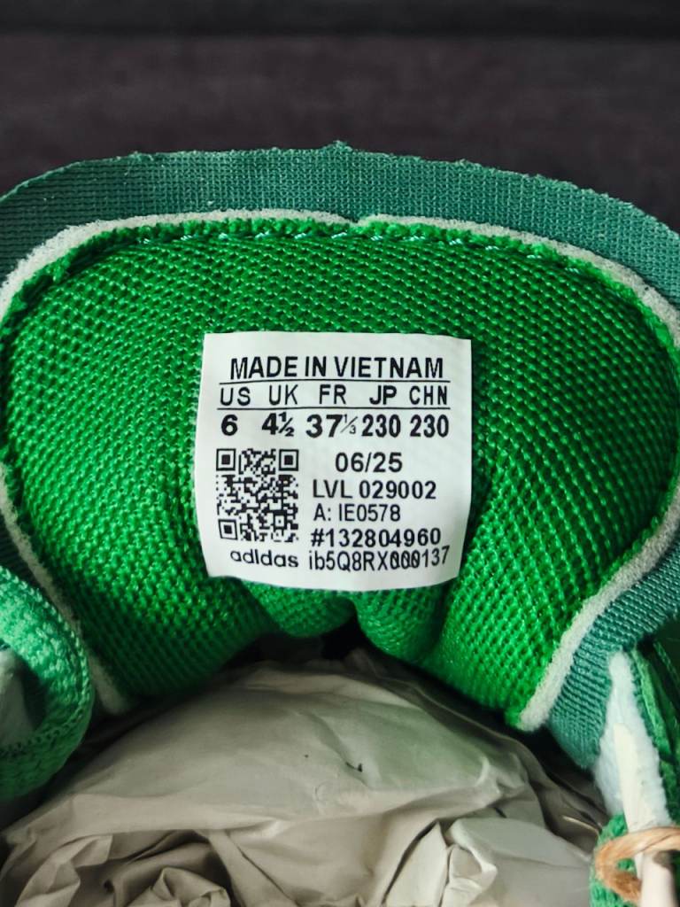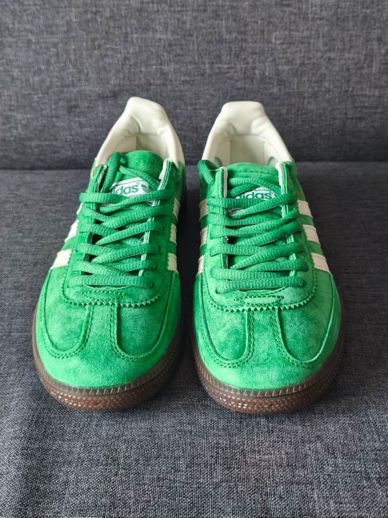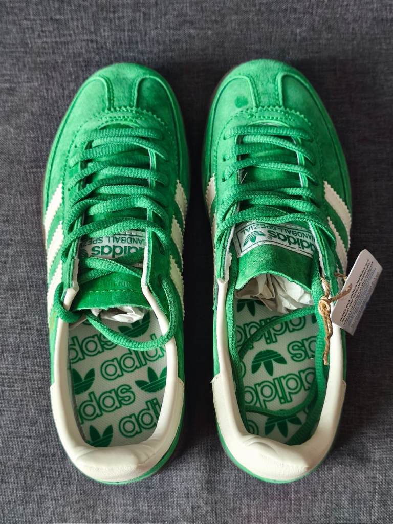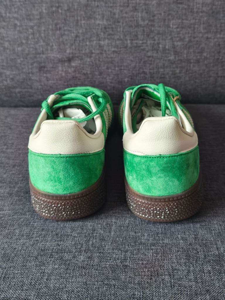 Hi, I have for sale beautiful Adidas Spezial trainers in green color. Size UK 4.5. Shoes are brand new, never worn, but unfortunately I have no box. Feel free to email or text me if any questions.