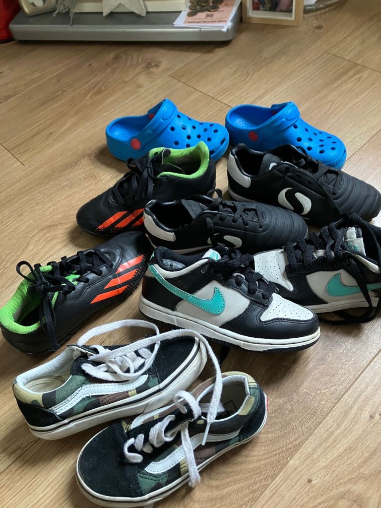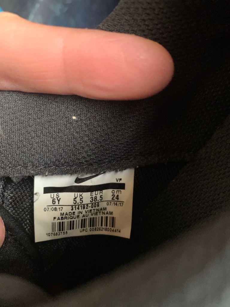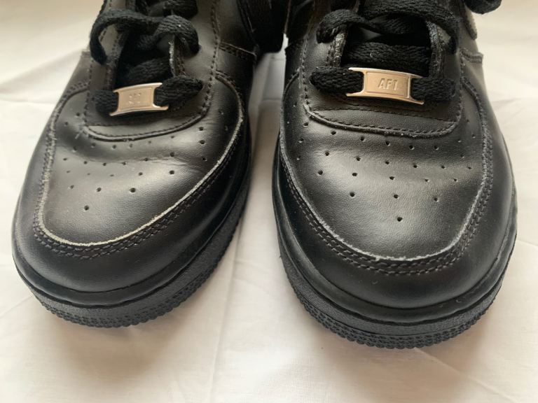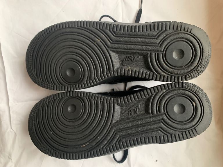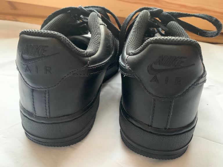 Black Air Force 1’s size 5 1/2 in excellent condition. Only worn a handful of times before my son grew out of them before he really got chance to use them. Great as school shoes.