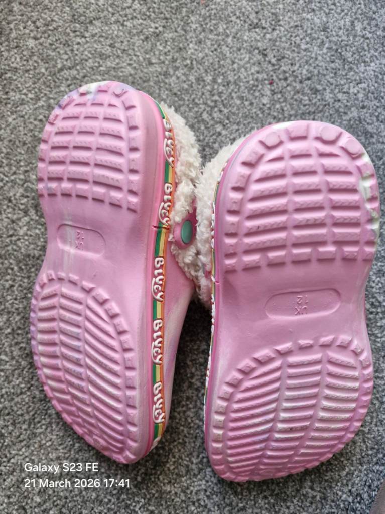 Bluey pink tie dye fleece lined clogs size 12, just worn for a few minutes and decide too small so like new. See my other adverts for clothing, toys, bedding etc. Collection from Hellesdon.