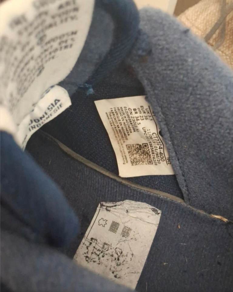 Scuff on the back of the right trainer as shown