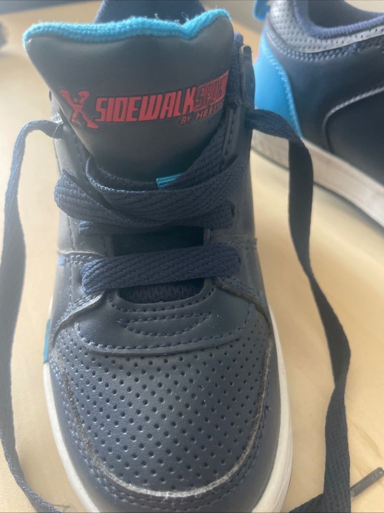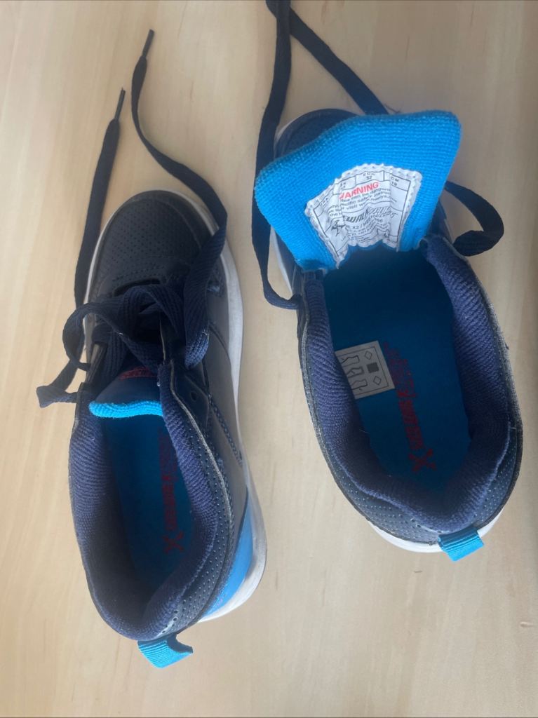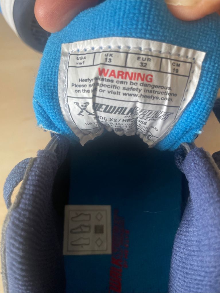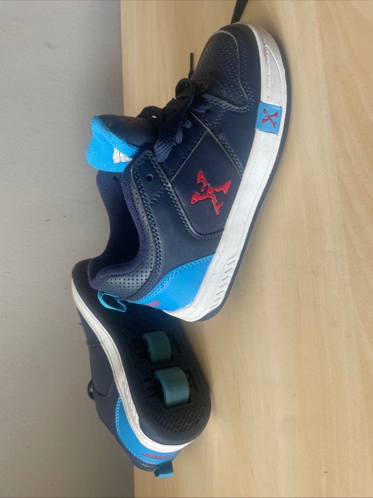 Blue leather, twin wheels under sole, Worn twice, Great condition.