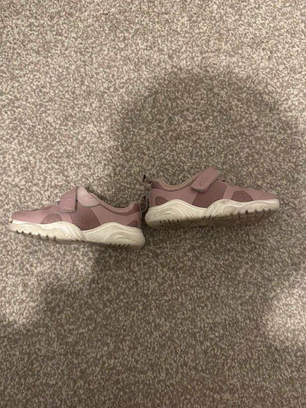 clarks first shoes roamer bow in pink. infants size uk 4.5 f/eu 20.5 with velcro strap and soft flexible sole. comes with original clarks first shoes keepsake box. used condition with light wear as shown.