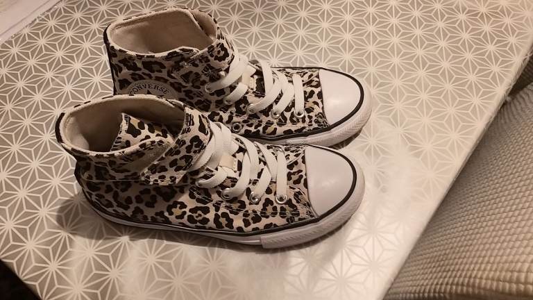 Almost new and in very good condition, no scuffs and soles good. Size 13 leopard print, no laces elastic lace and velcro top for ease of wear. Buyer collects