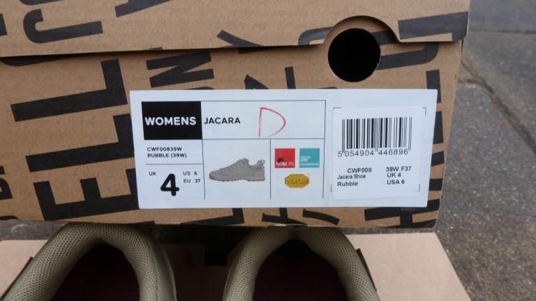 Craghoppers womens Jacara Rubble aquadry walking shoes size UK 4 but fit small to a 3 or 3.5. brand new in box with tags. colour Rubble. Selling as my wife is a 4 but these are just slightly too small for her. Bought for christmas. she has another pair of Craghoppers size 4 which fit fine, just a different model. She states they are the comfiest walking shoes she has ever had. Collection Tamworth B79 7US