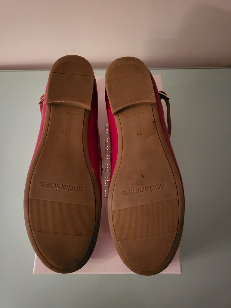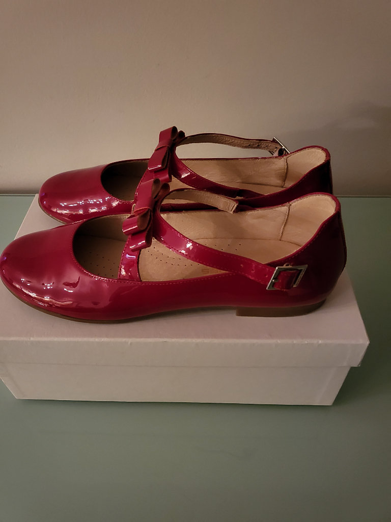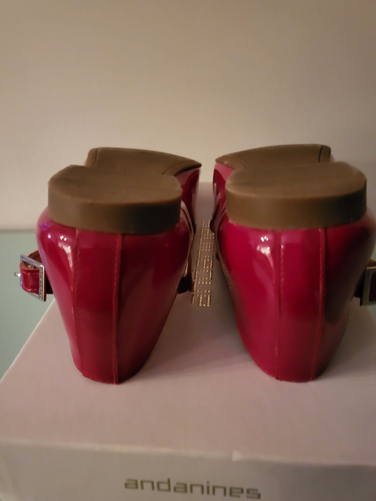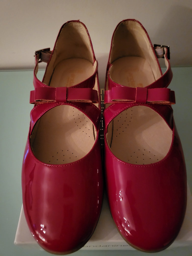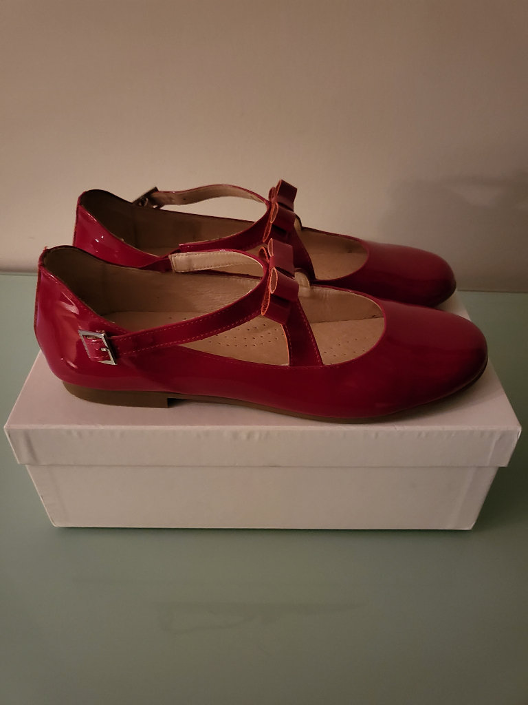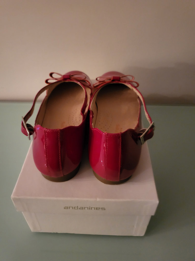Beautiful Girls Red Patent Shoes, From The Designer Brand Andanines, In UK Size 5/ EU Size 38, In A Used But Excellent, Like New Condition (Only Worn On 2 Occassions), & From A Smoke Free Home, For Sale.