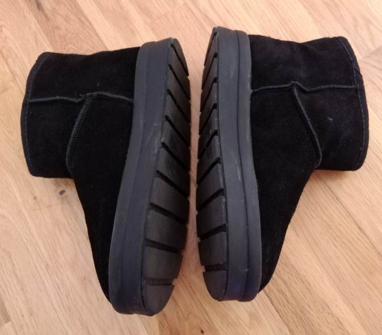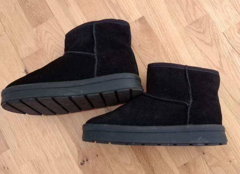 These are a pair of black suede boots, perfect for keeping your feet warm.