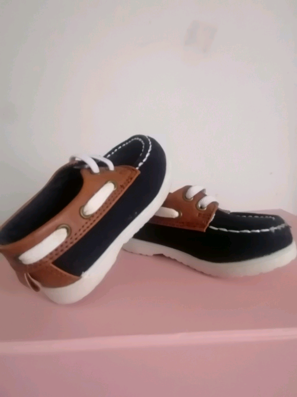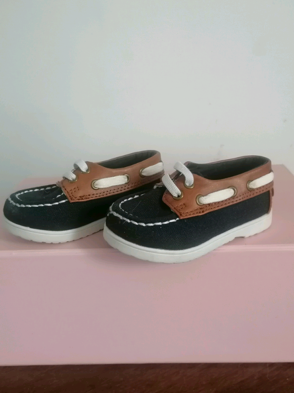 H&M Infant/Toddler Slip on Boat Shoes, Navy & Brown Size 2.5-3.5