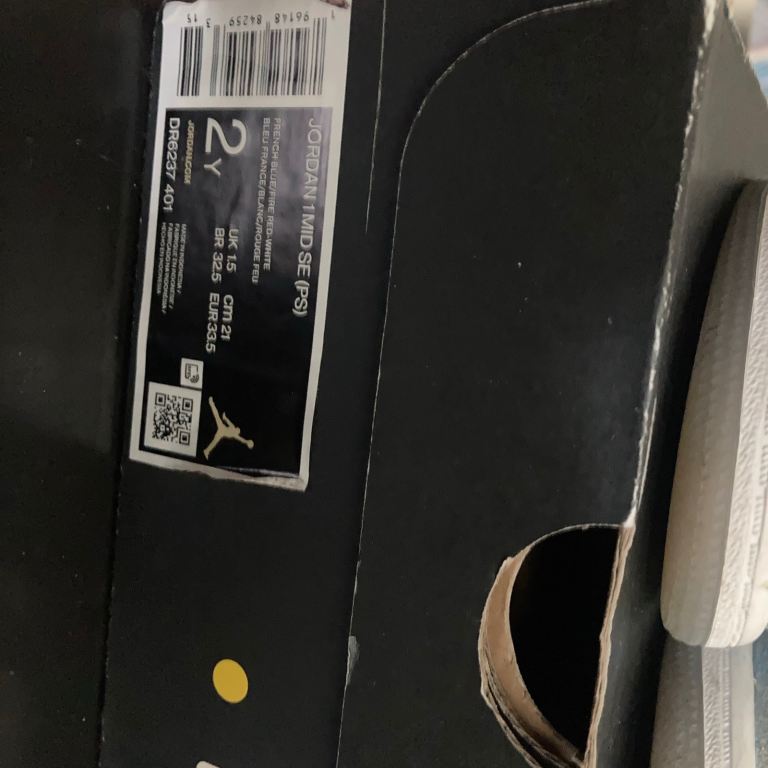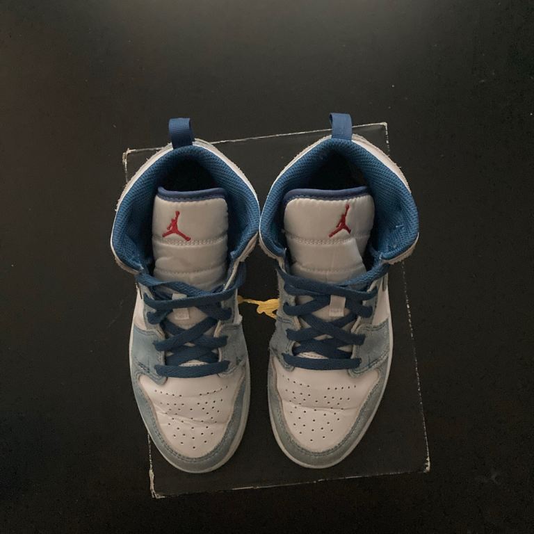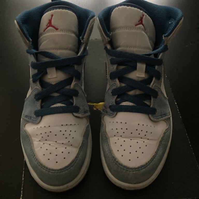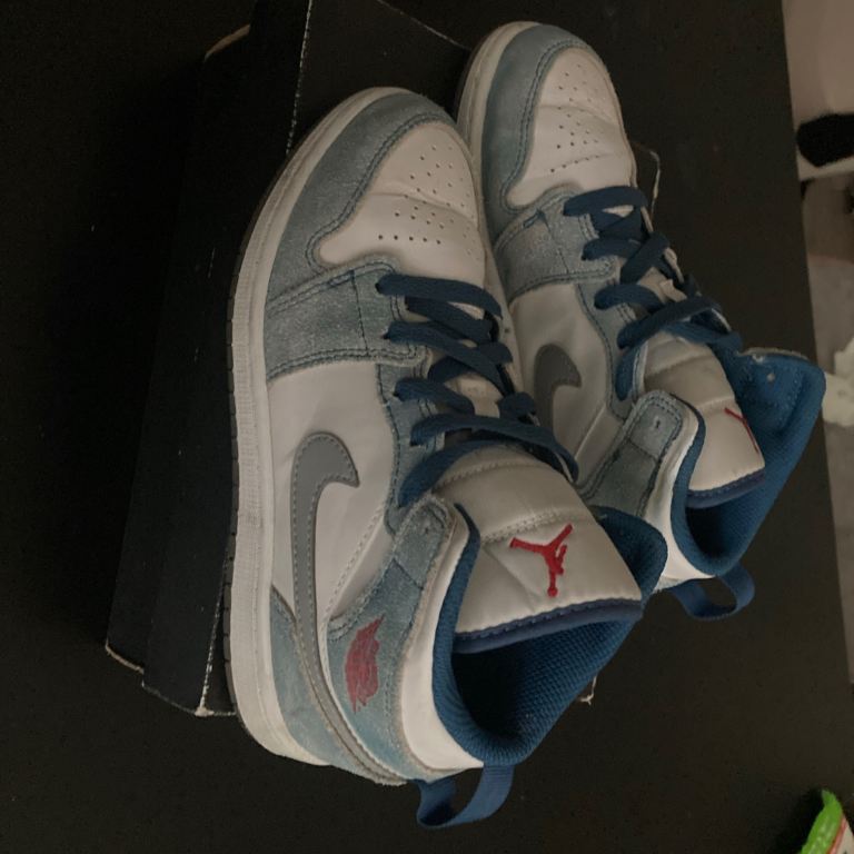 Children’s Jordan 1 mid in French blue/ white SIZE 1.5 Excellent condition Very hard to find this colour now without paying a fortune for them My daughter loved them and kept them for best so they are in real good condition