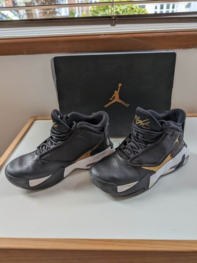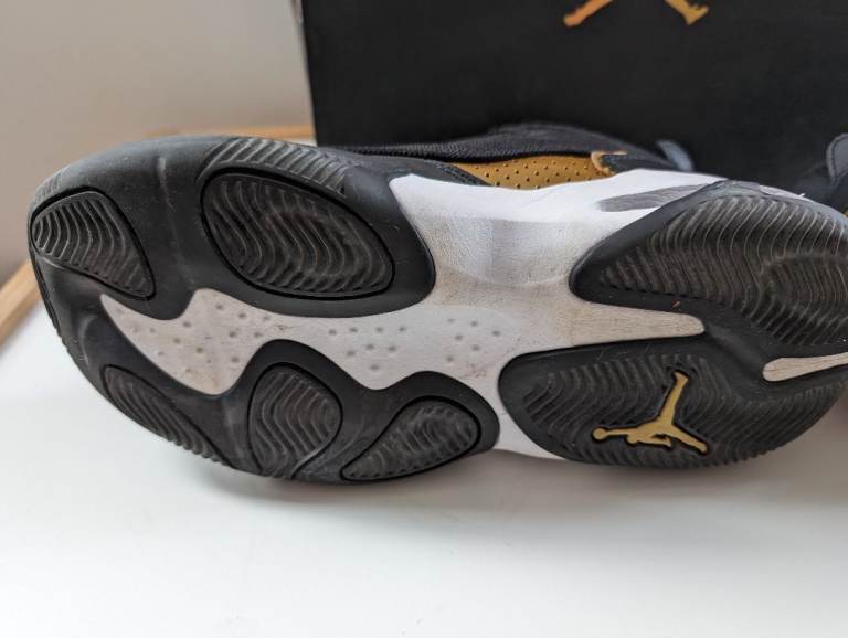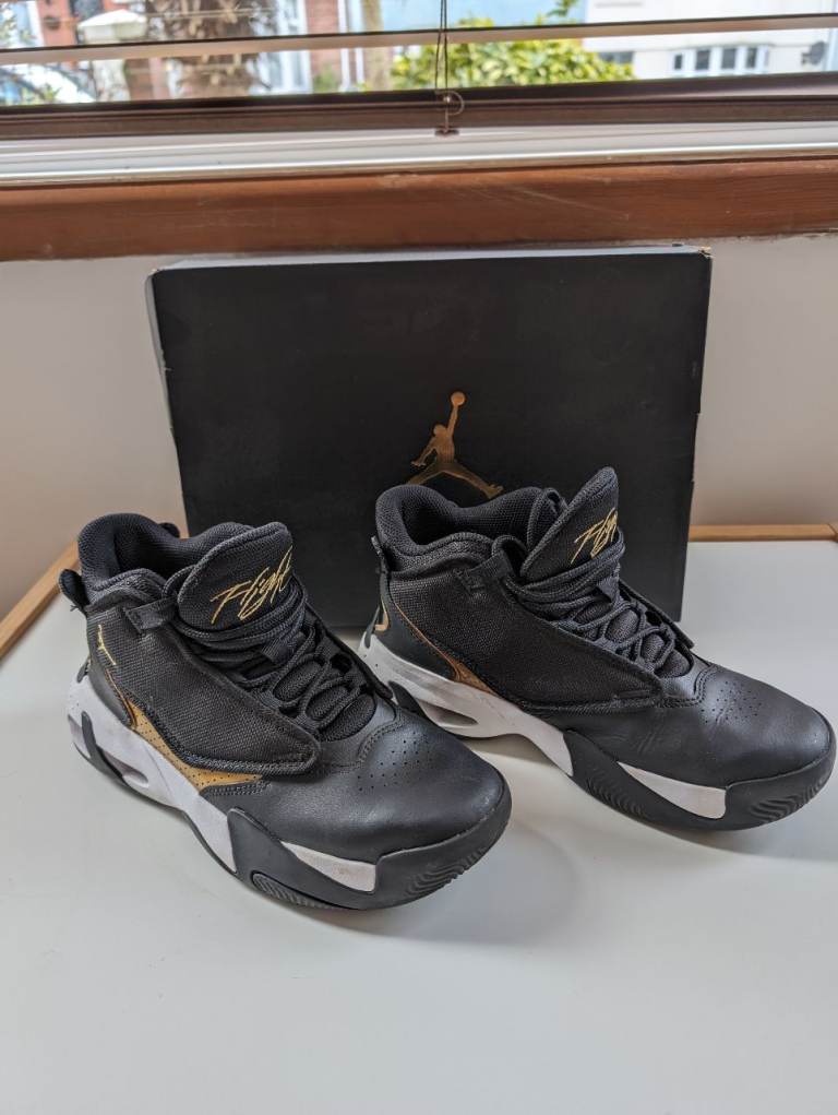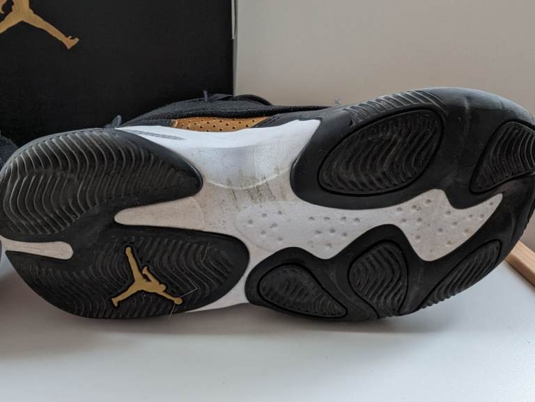 Black/white/gold Jordan Max Aura in excellent condition. Only worn a few times before outgrown. A few scuff marks as shown in the pictures. With original box.
