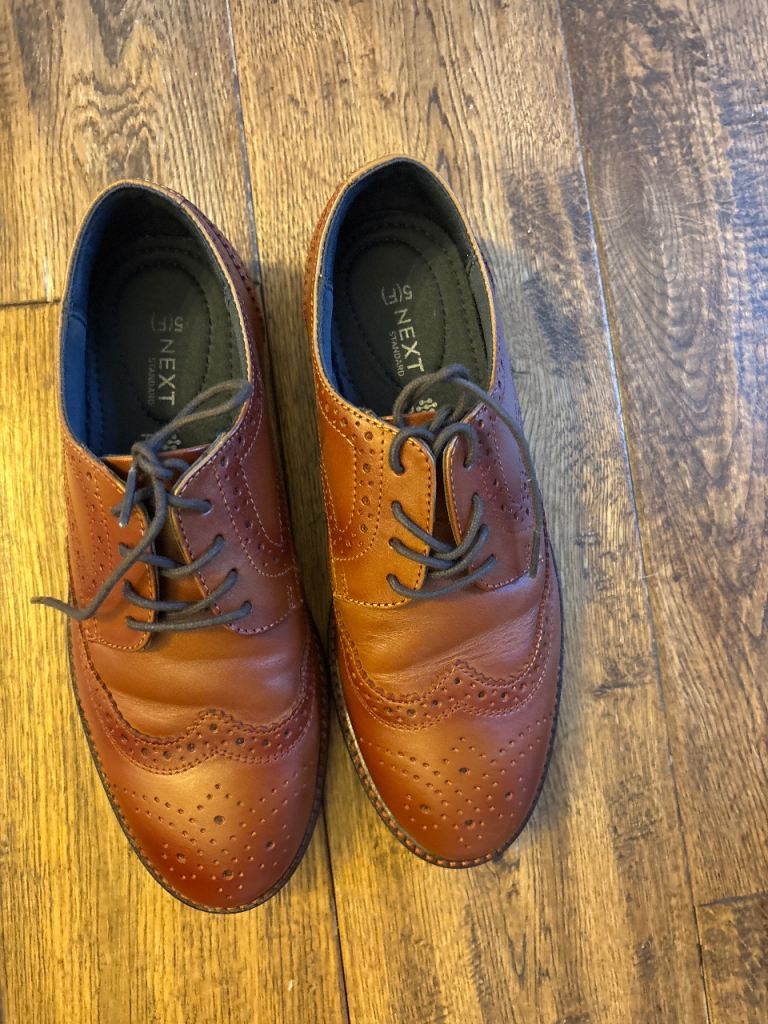 Kids brown brogues size 5 from next absolutely perfect condition bought them for my son to wear at a wedding he’s never had them on since genuinely worn once £20 quid